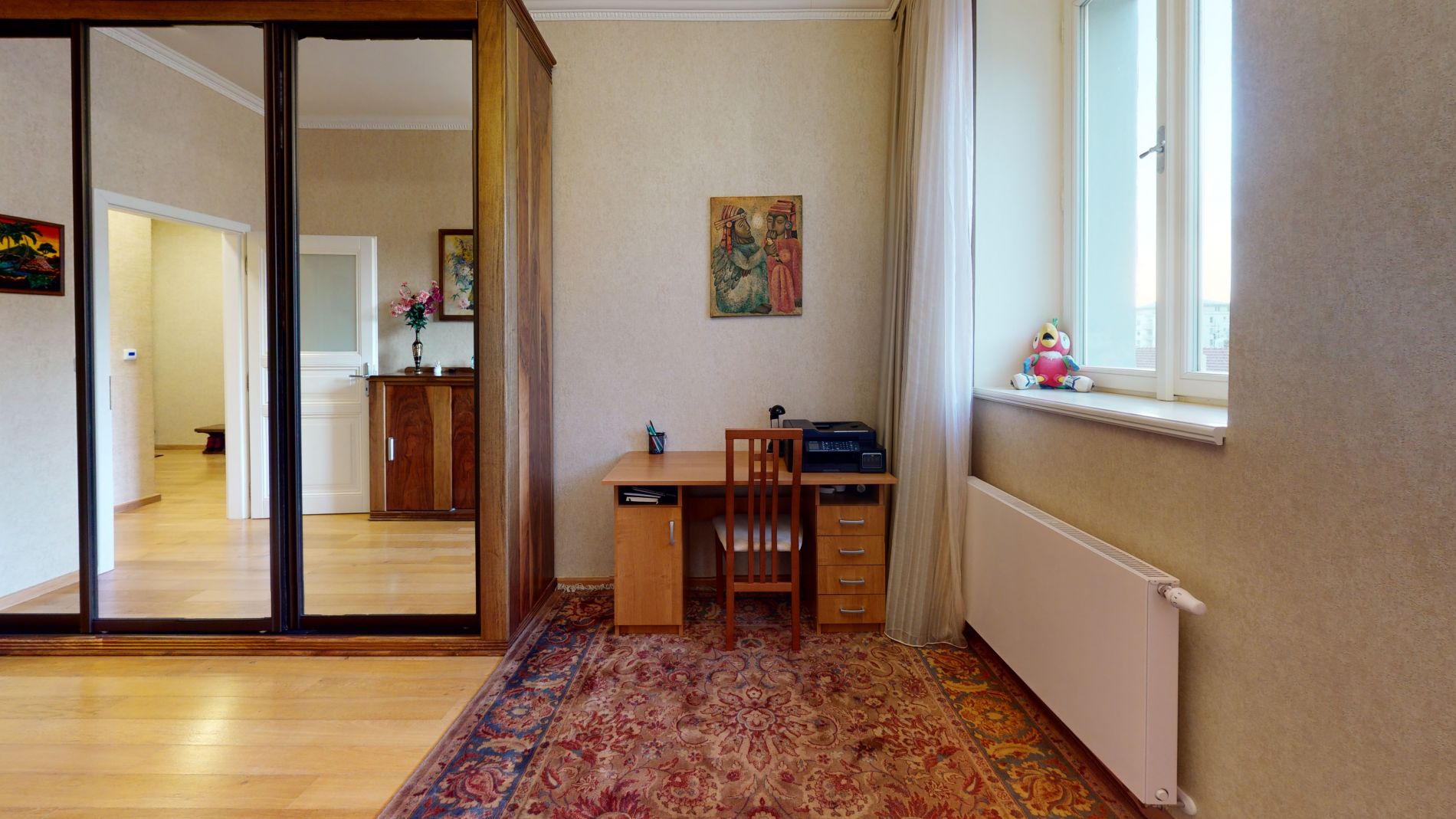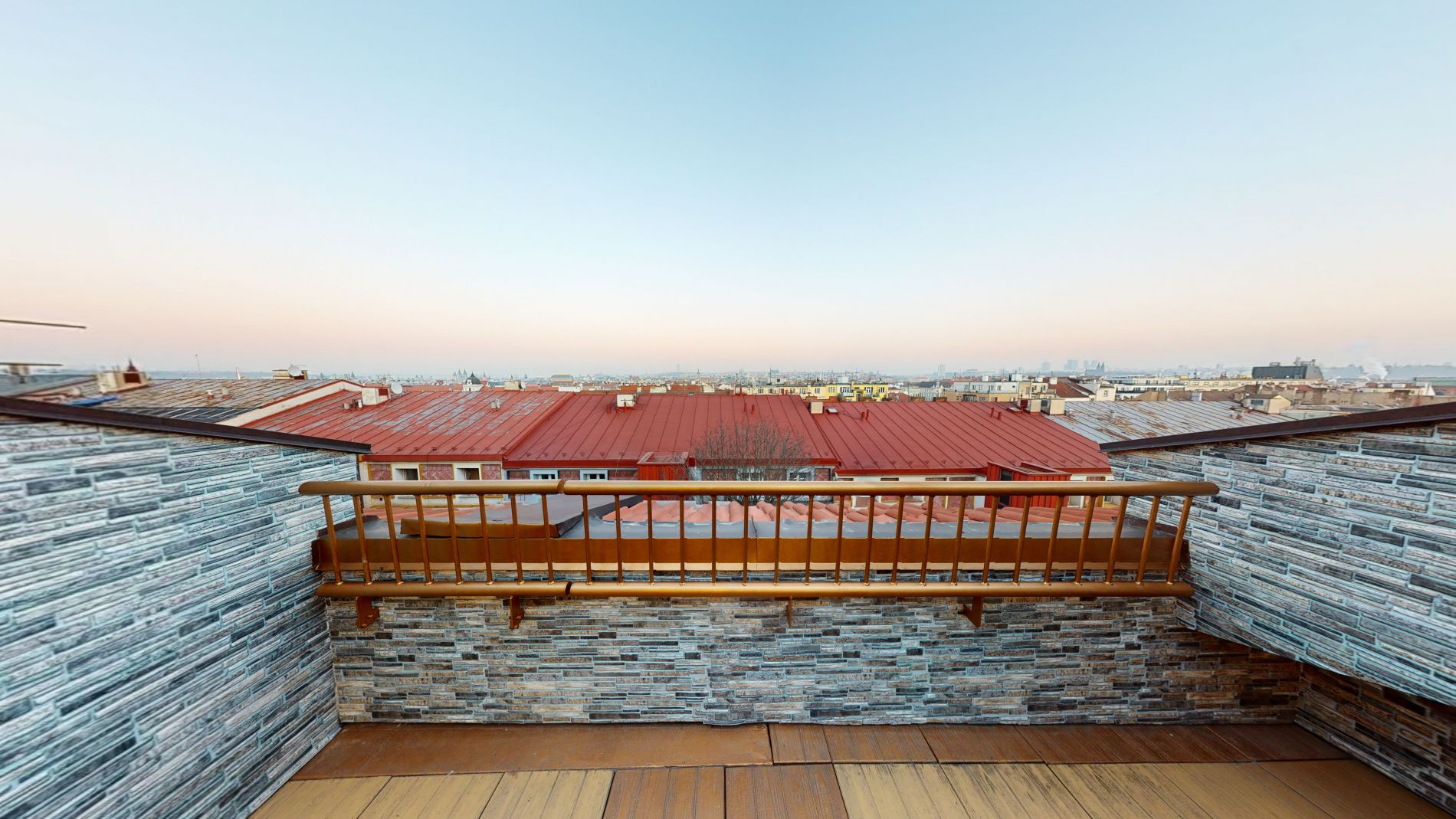 Byt nabízí krásné panoramatické výhledy na historické centrum Prahy, dostatek denního světla a velmi příjemnou atmosféru bydlení.