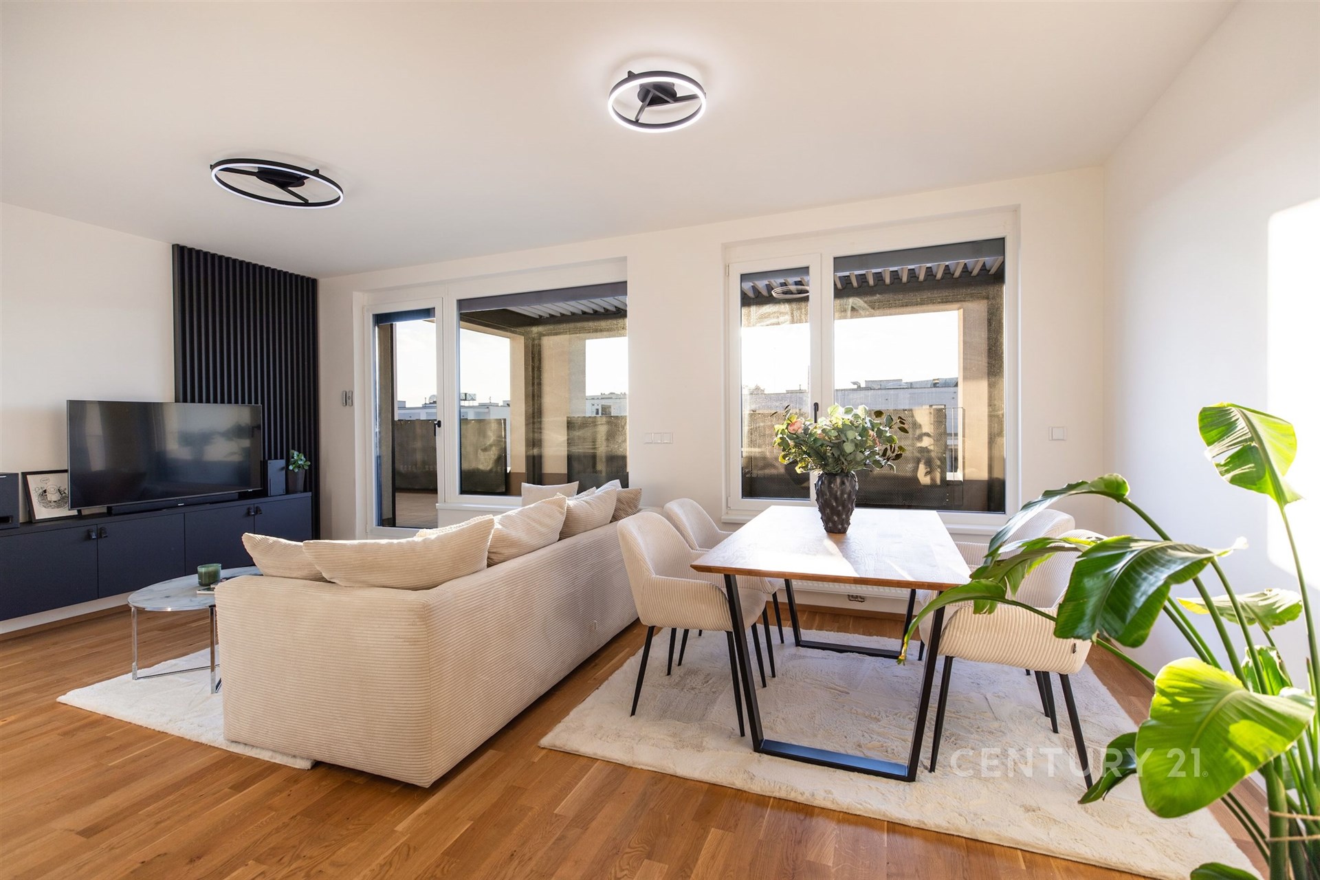 Prodej luxusního střešního bytu 3+kk s terasou, garážovým stáním a sklepem, 109 m², Vysočany Praha