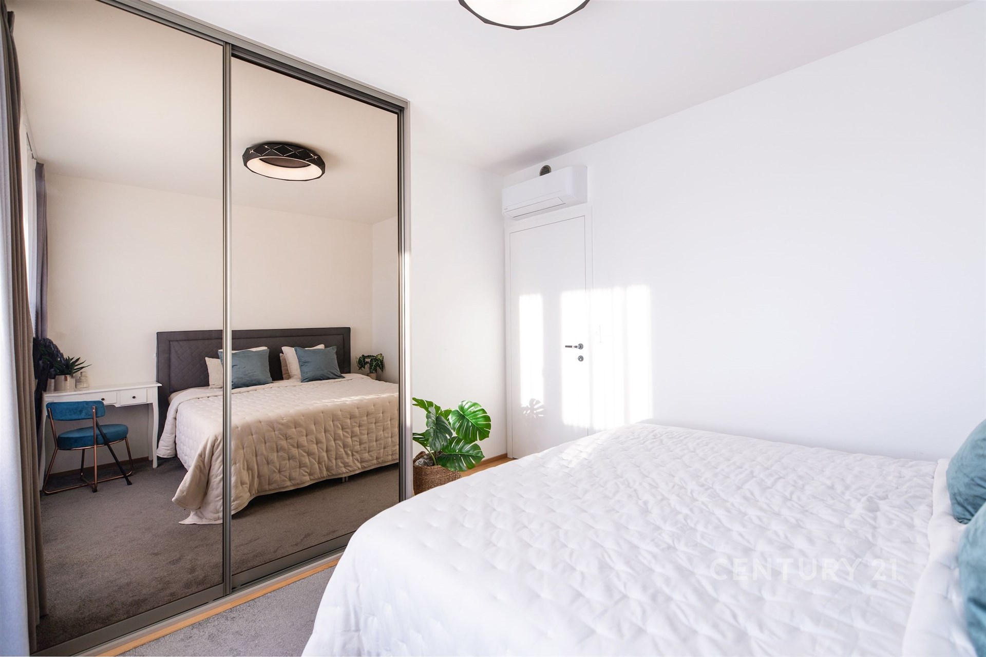 Klimatizace Toshiba A+++ ve všech obytných místnostech, která se ovládá přes aplikaci Toshiba Home. Předokenní žaluzie Somfy Z70 – plně automatické, řízené dálkově nebo aplikací. Optické připojení Fiber – TMobile, O2, Vodafone a další. V bytě dominuje zakázkový vestavěný nábytek zhotovený na míru: elegantní TV sestava s lamelami, šatní a technické skříně, koupelnové sestavy s LED zrcadly, šatna v ložnici i knihovna v pracovně. Německá kuchyň je vybavena spotřebiči Haier, včetně vinotéky. Interiér dotváří luxusní dveře bezfalcové konstrukce (výška 2,1 m) s trojitým lakem Polar, černým kováním M&T Lusy a magnetickými zámky.