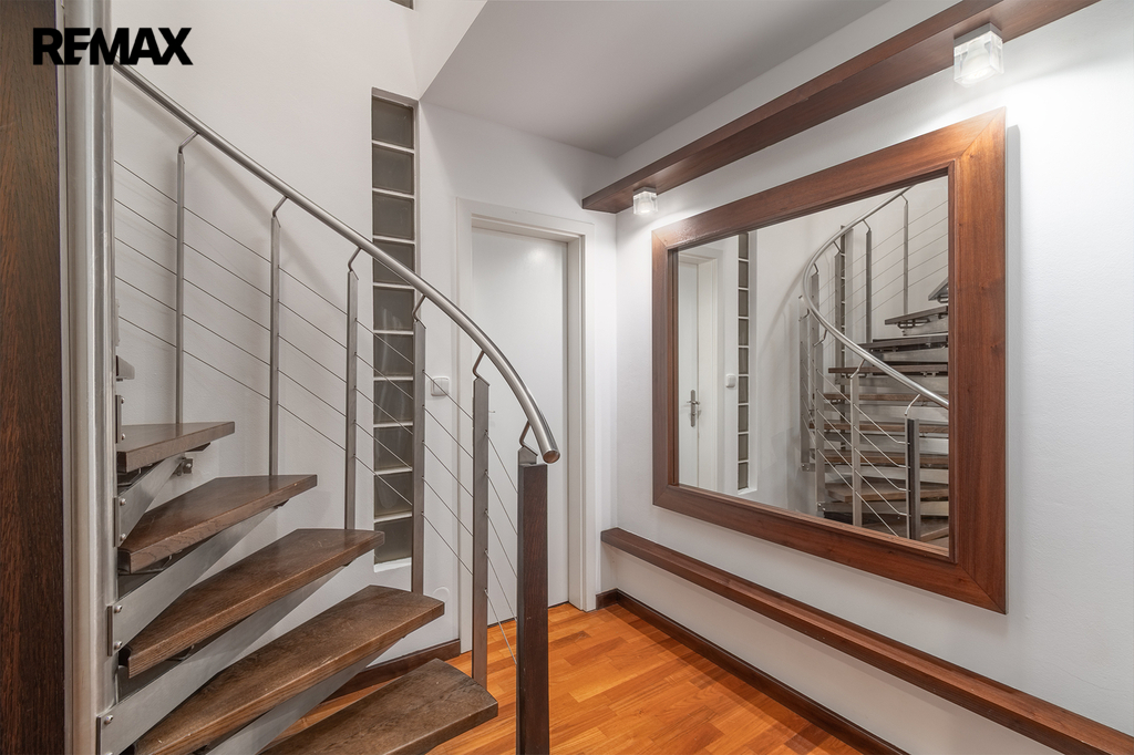 Tento mezonetový byt se nachází v 6. a 7. nadzemím podlaží bytového domu s výtahem. K ploše bytu 107 m2 dále náleží vlastní terasa 6 m2 a zděný sklep v suterénu domu o výměře 6 m2.