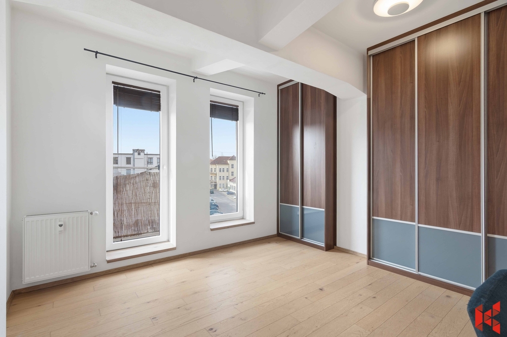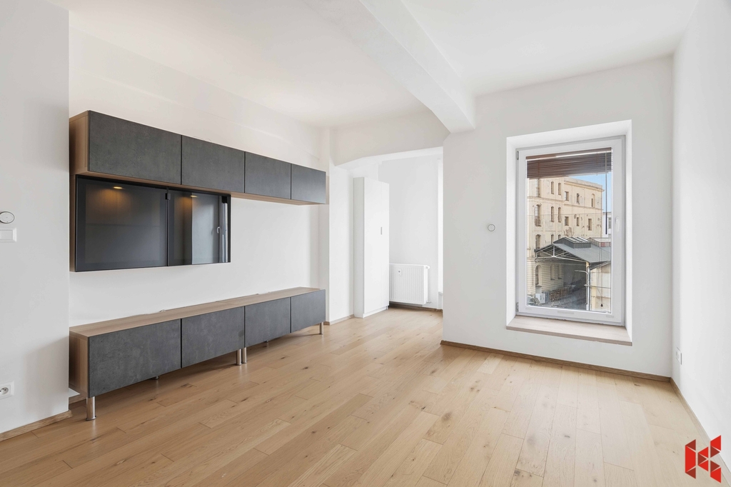 Interiér nabízí dřevěné podlahy, balkón pro příjemné chvíle venku a výhodou je i částečné vybavení.