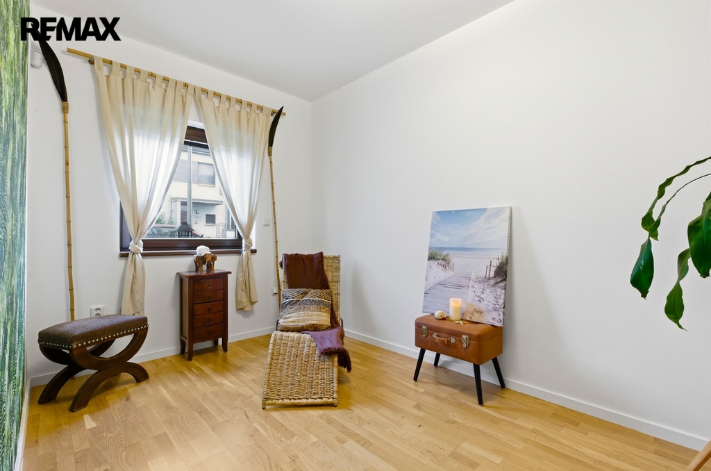 - Dřevěná podlaha i okna (trojsklo); dveře Sapeli