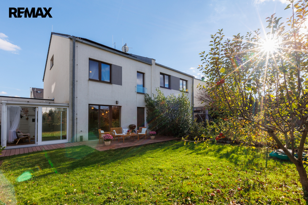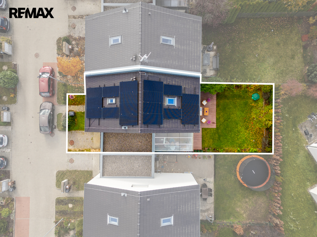 Prodej moderního domu 5+kk s garáží, podkrovím, terasou a fotovoltaikou v Hostavicích - Praha 14