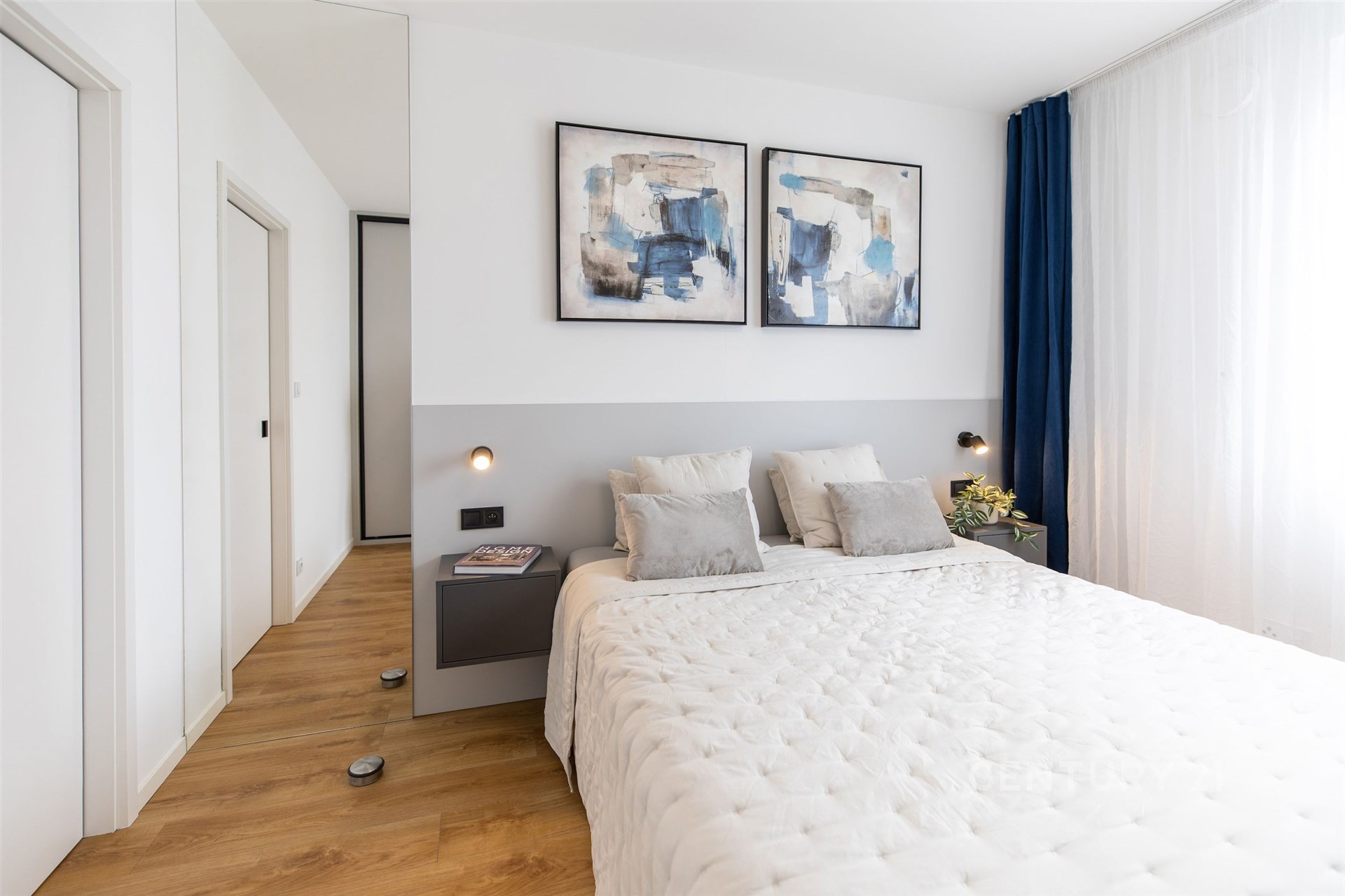 Když vstoupíte do tohoto útulného, nadstandardně vybaveného bytu, zastaví se Vám dech. Je zde propracovaný každý detail s důrazem na jednoduchost a design. Jednotka se nachází v šestém nadzemním podlaží s výtahem. Okna všech místností jsou orientovaná na jih, byt je díky tomu krásně světlý. Kuchyňská linka je vyrobena na míru od truhláře s vestavěnými spotřebiči. Z obývacího pokoje je přímý vstup na prostornou lodžii, kde si můžete užívat slunné jarní a letní dny s šálkem horké kávy. Ložnice je vybavena kvalitní manželskou postelí s výhledem do ulice. Velkou výhodou jednotky je dostatek úložného prostoru díky samostatné komoře, kam můžete uložit spoustu věcí, jako další úložný prostor slouží vestavěné skříně v ložnici a na chodbě. Když jsem prvně viděla koupelnu, byla jsem nadšena, jak je luxusní a stylová. Dveře do všech místností jsou vyrobeny na míru z velmi kvalitních materiálů. K jednotce je možné dokoupit garážové parkovací stání za 600 000 Kč.