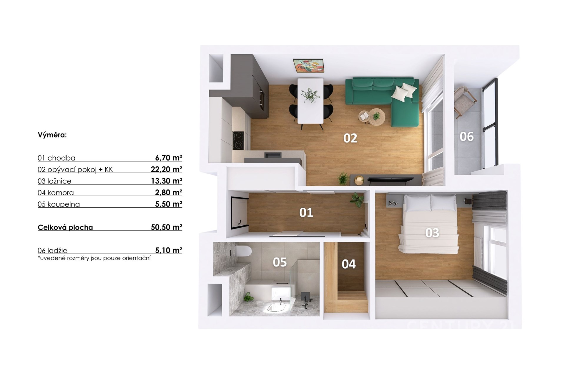 | Dispozice/podlahová plocha: | 2+kk/52 m² |