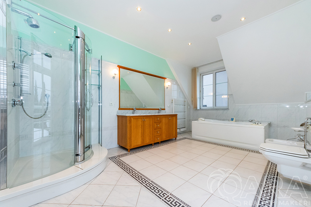 - Hlavní ložnice (30,9 m²) se samostatnou koupelnou a šatnou