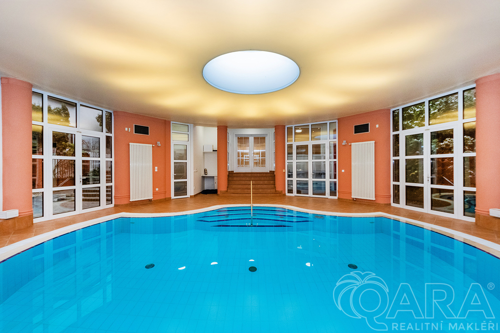 - Vnitřní bazén s protiproudem, hloubka cca 1,5 m po celé ploše