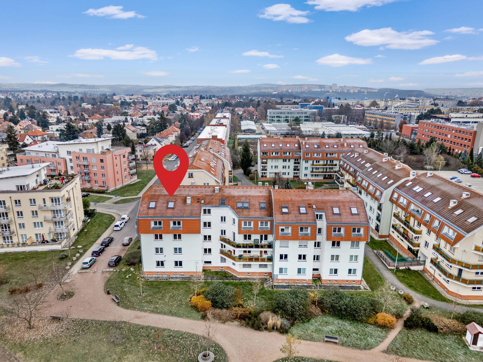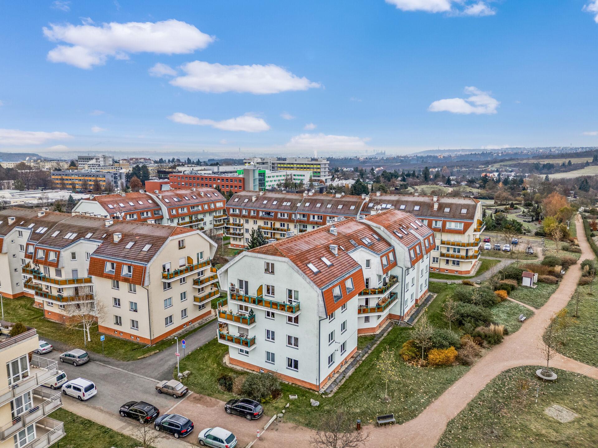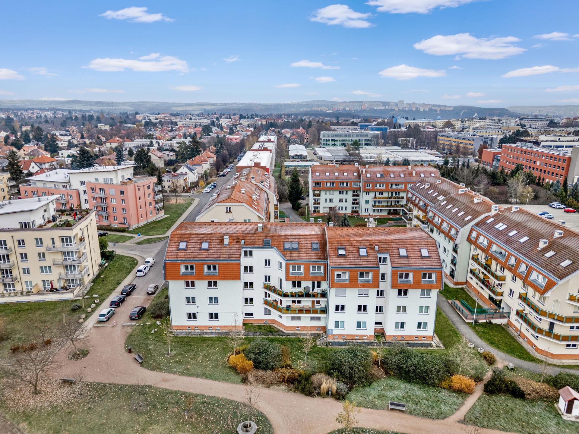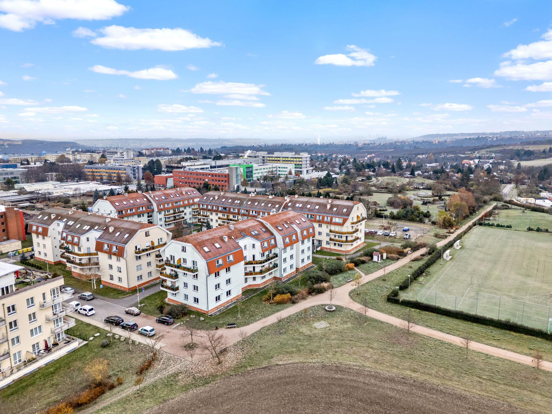 Pouhé 2 minuty pěšky je vzdálena stanice autobusu se spojením na metro A Dejvická a areál České zemědělské univerzity s plaveckým bazénem a dalšími sportovišti. V okolí je kompletní občanská vybavenost (MŠ, ZŠ, obchody, služby, restaurace, kulturní i sportovní vyžití). Přímo od domu vedou cyklostezky do přírodních parků Šárka – Lysolaje nebo Housle a i do krásné přírodní rezervace Údolí Únětického potoka.