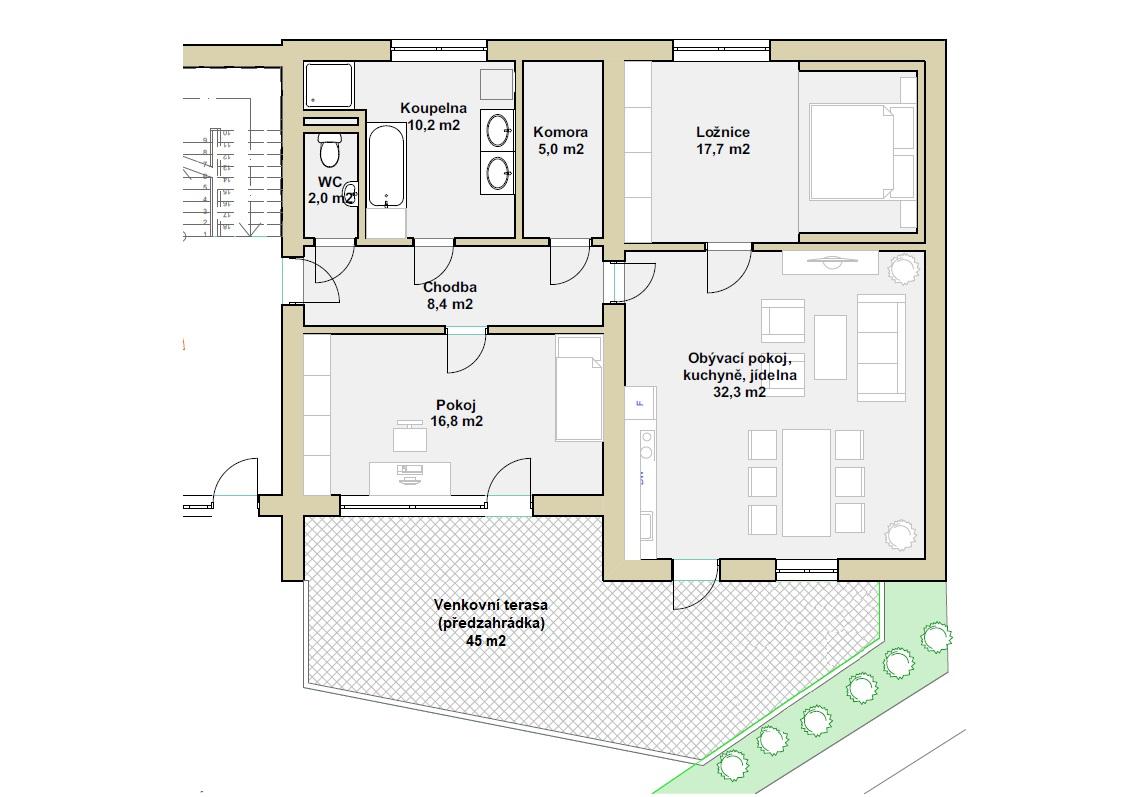 | Dispozice/podlahová plocha: | 3+kk/100 m² |