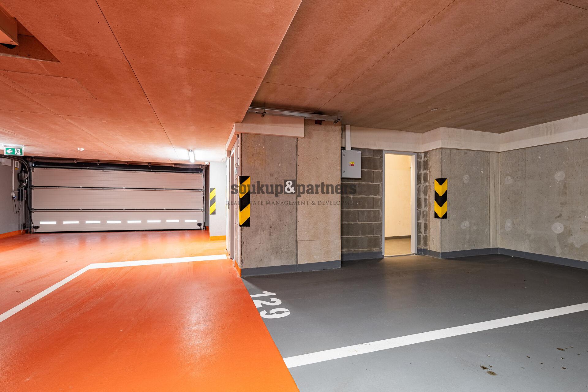 Byt je kompletně vybavený a připravený k okamžitému užívání bez nutnosti dalších investic. Součástí je plně vybavená kuchyňská linka s vestavěnými spotřebiči Bosch (varná deska, trouba, mikrovlnná trouba, digestoř, myčka a lednice s mrazákem), jídelní stůl s designovými židlemi, akustické panely, LED TV a praktická skříň s integrovanou kombinací pohovky a sklopné postele – během dne plnohodnotný obývací prostor, večer komfortní spaní bez kompromisů.
