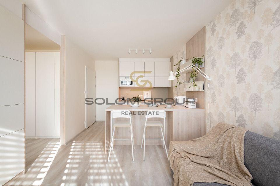 Byt Vám je předán vč. kuchyňské linky IKEA (zařízené el. troubou, digestoří, indukcí, myčkou na nádobí, lednicí a mrazákem), dále včetně zařízené koupelny (umyvadlo, vana, topný žebřík a závěsná toaleta, zrcadlo, pračka se sušičkou), interiérové dveře, plastová okna, nové rozvody vody, elektřiny a odpadů, protipožární vchodové dveře, obklady a dlažba a vinyl. V ložnici velká šatní skříň.