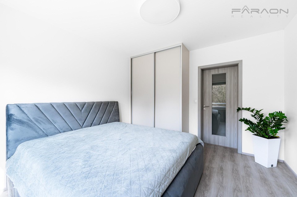 Dispozici tvoří obývací pokoj s kuchyňským koutem a jídelní částí a přímým vstupem na terasu, samostatná ložnice, vstupní chodba a prostorná koupelna s vanou a závěsnou toaletou.