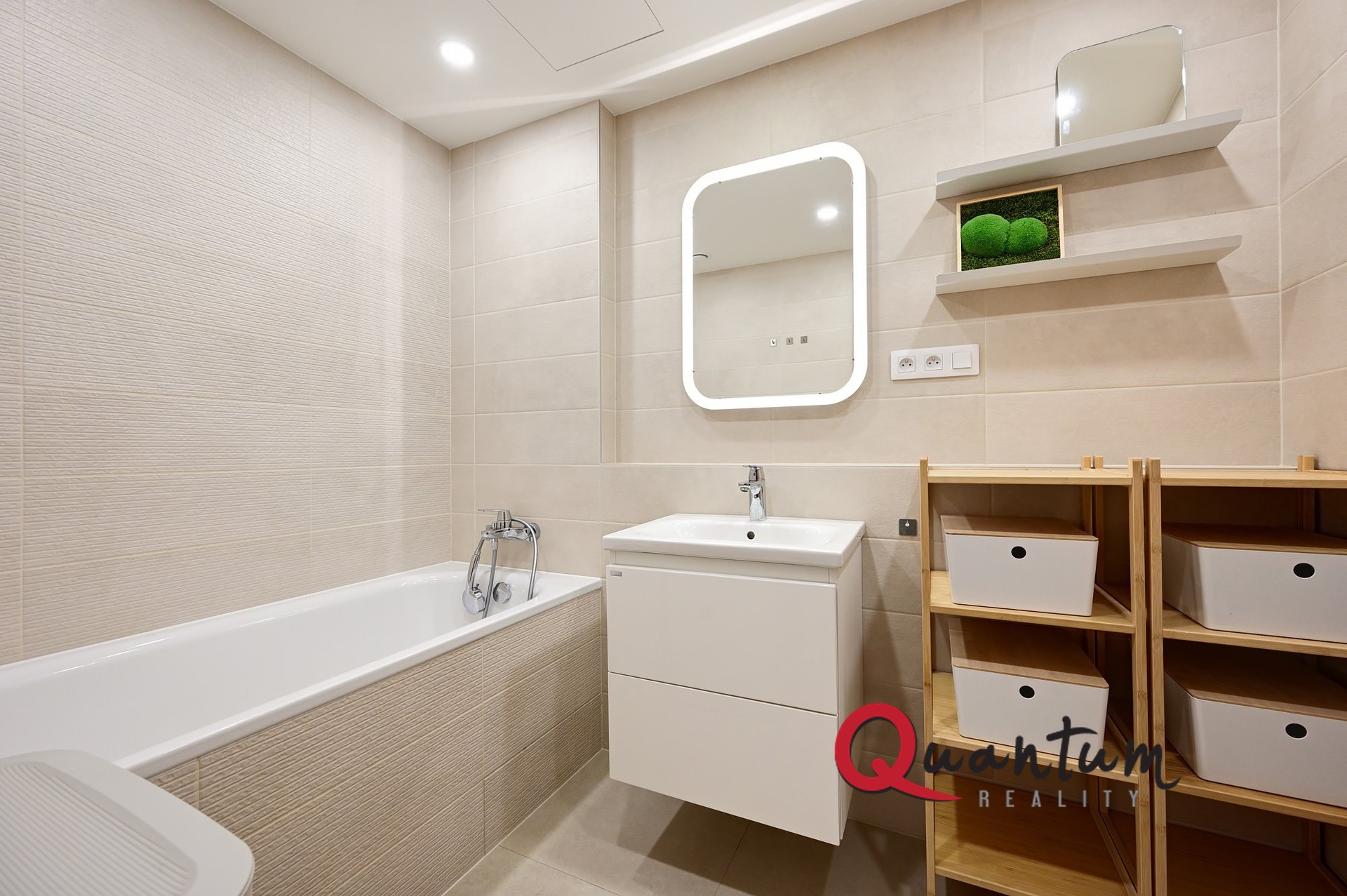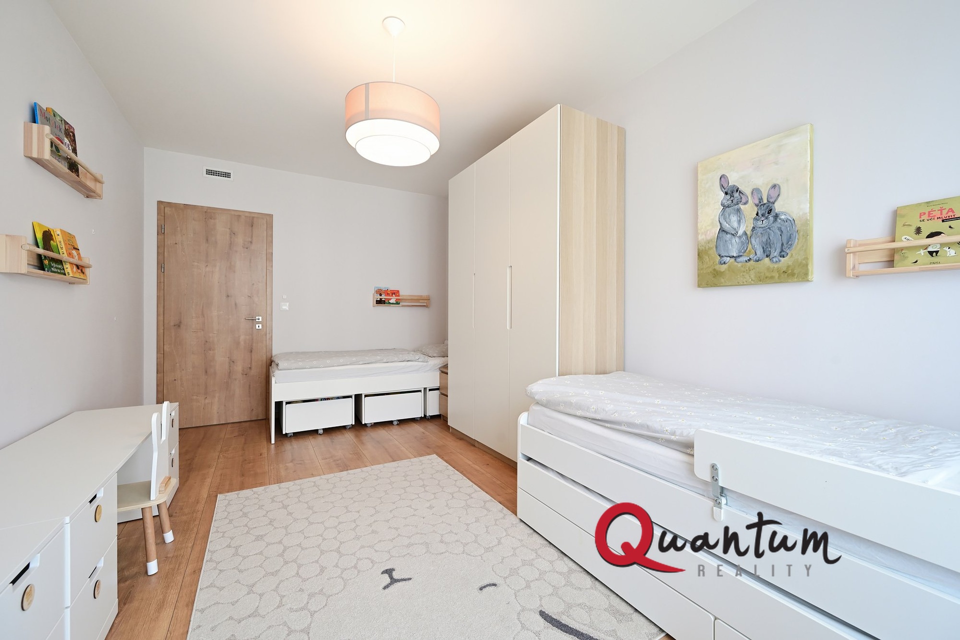 Součástí prodeje je kompletní vybavení bytu – kvalitní kuchyňská linka se spotřebiči a vestavěné skříně. Samozřejmostí je rekuperace s možností ovládání, technická místnost s prostorem pro pračku a sušičku a sklep umístěný v blízkosti parkovacího stání.