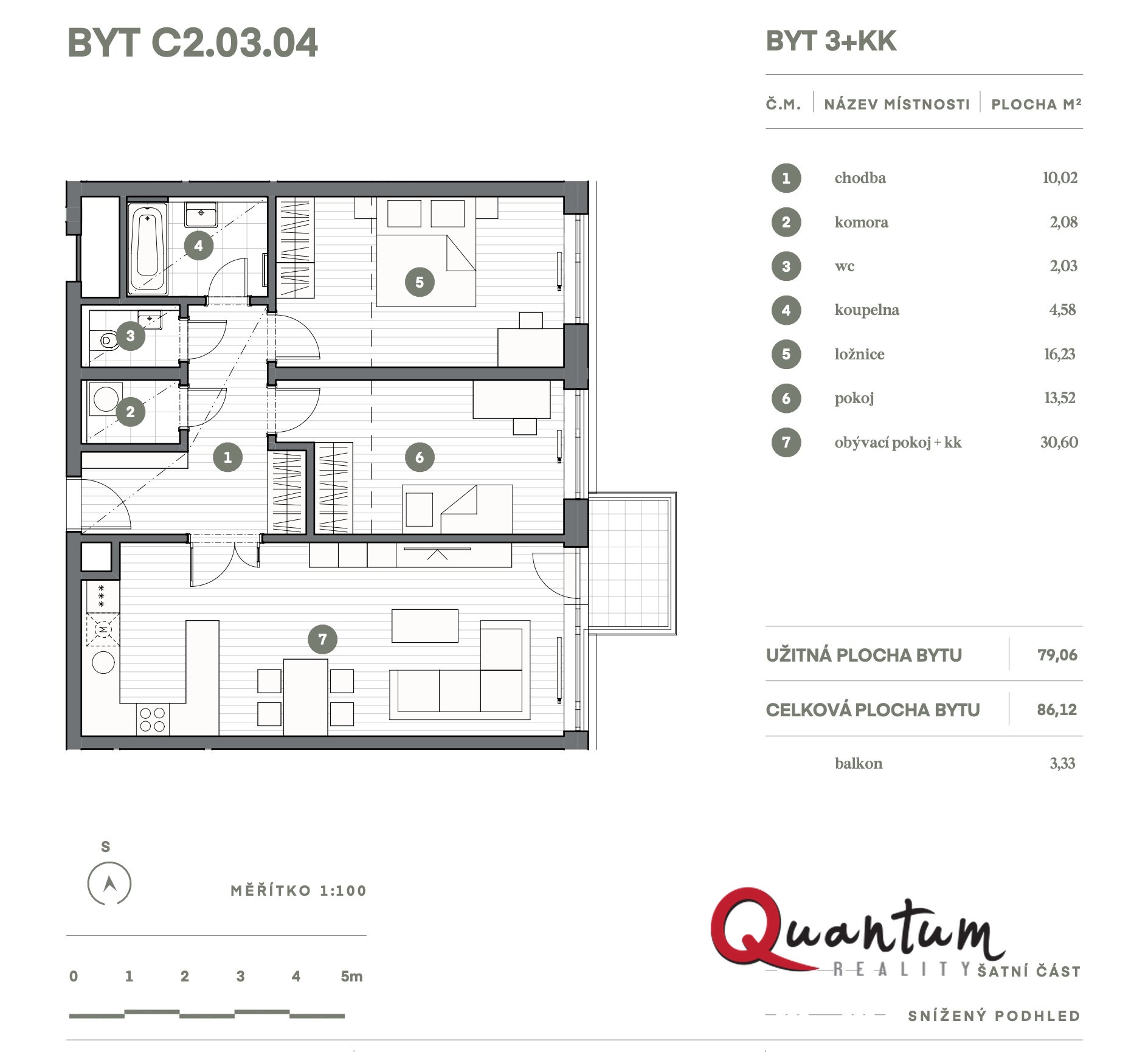 | Dispozice/podlahová plocha: | 3+kk/86 m² |