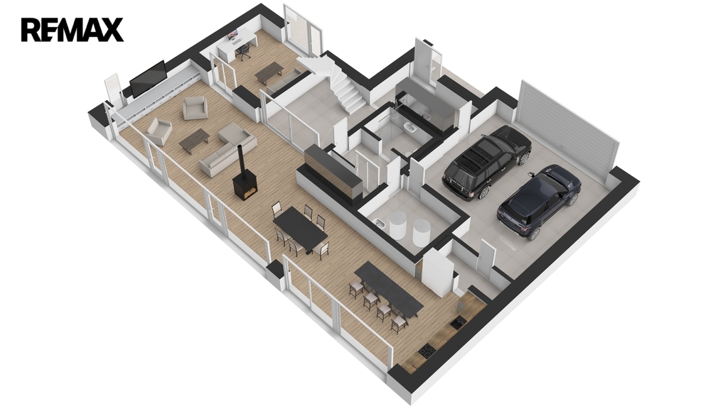 - obývací prostor s kuchyňským koutem (89 m²), s přímým vstupem na terasu a zahradu