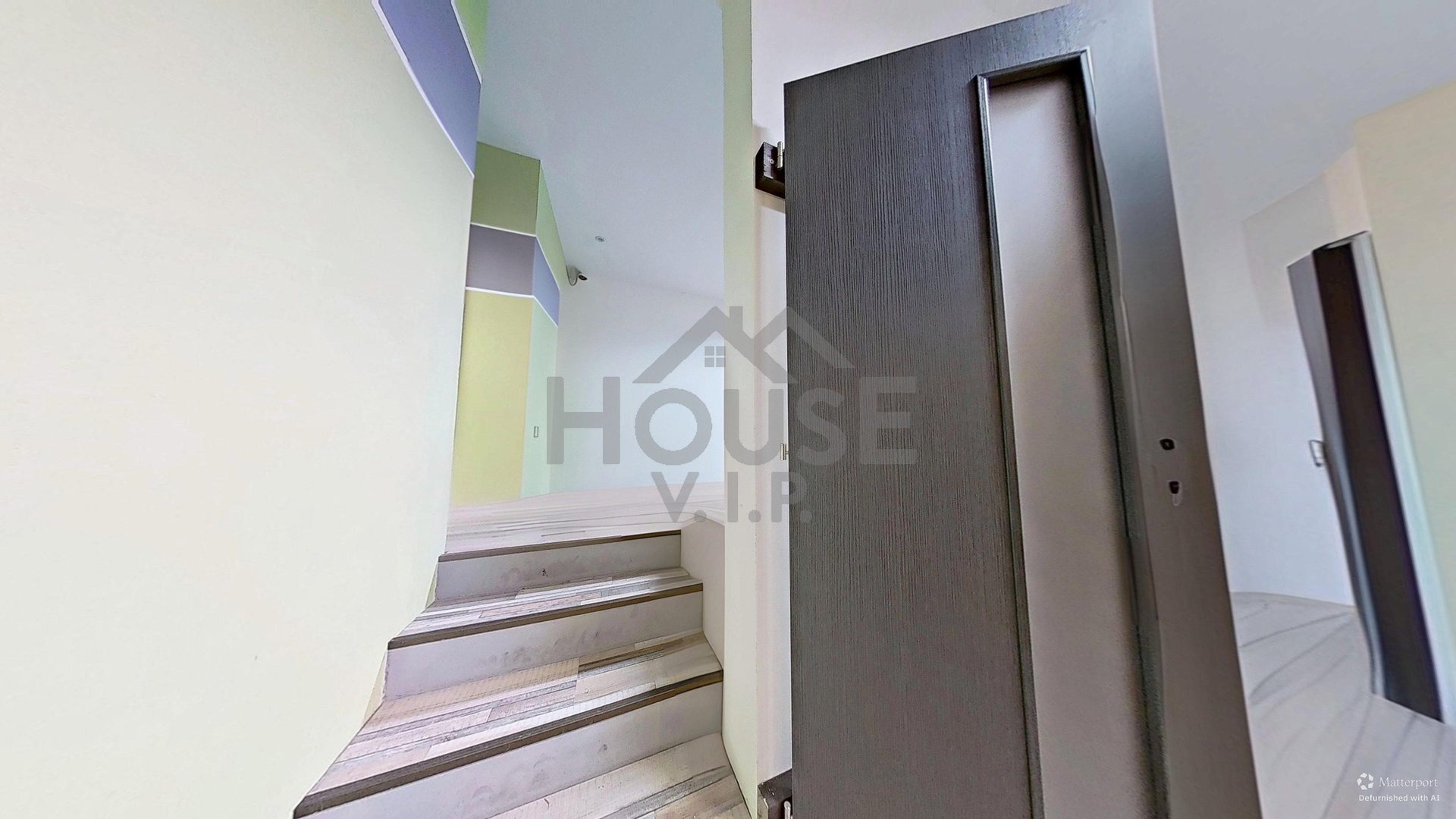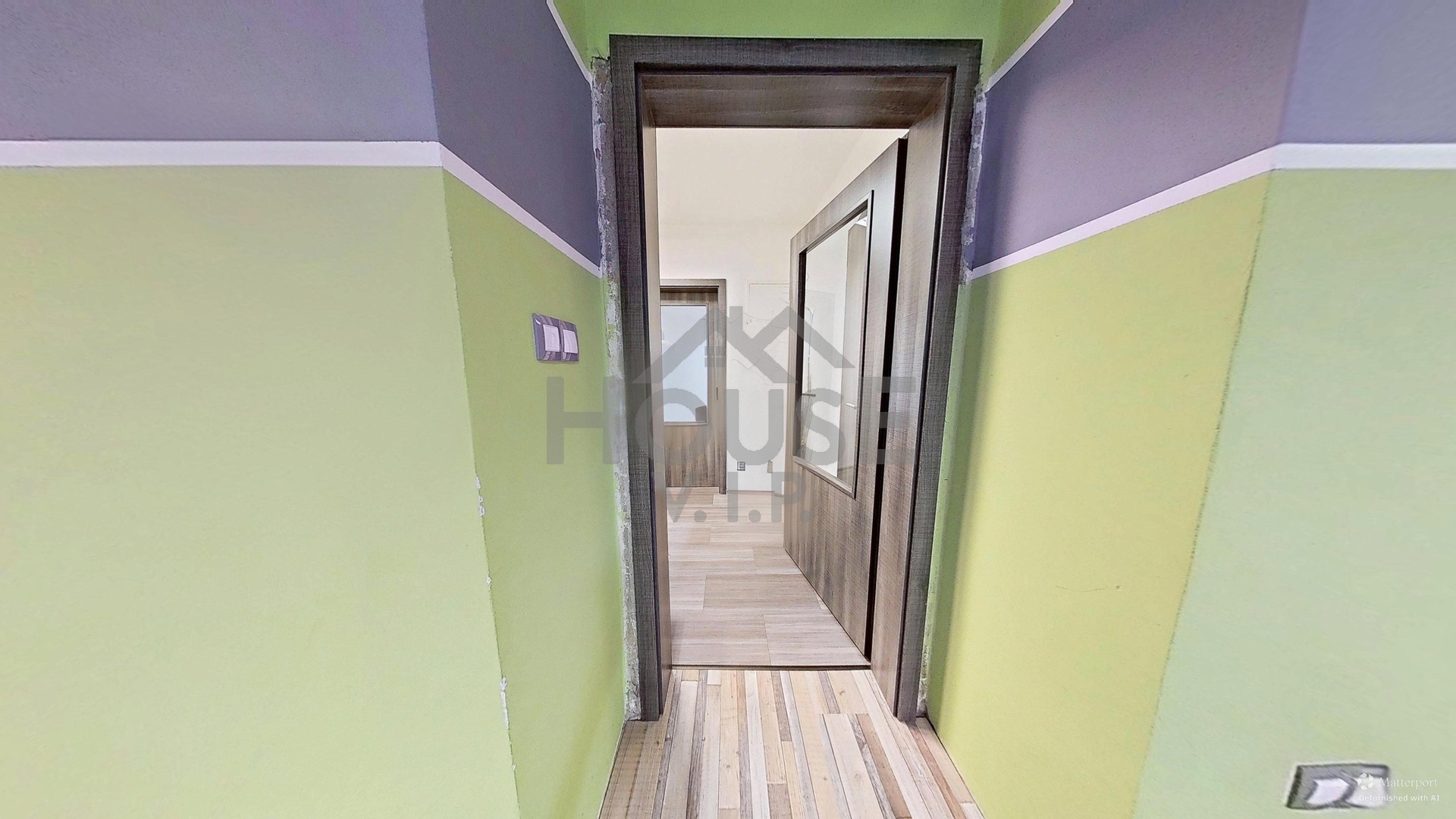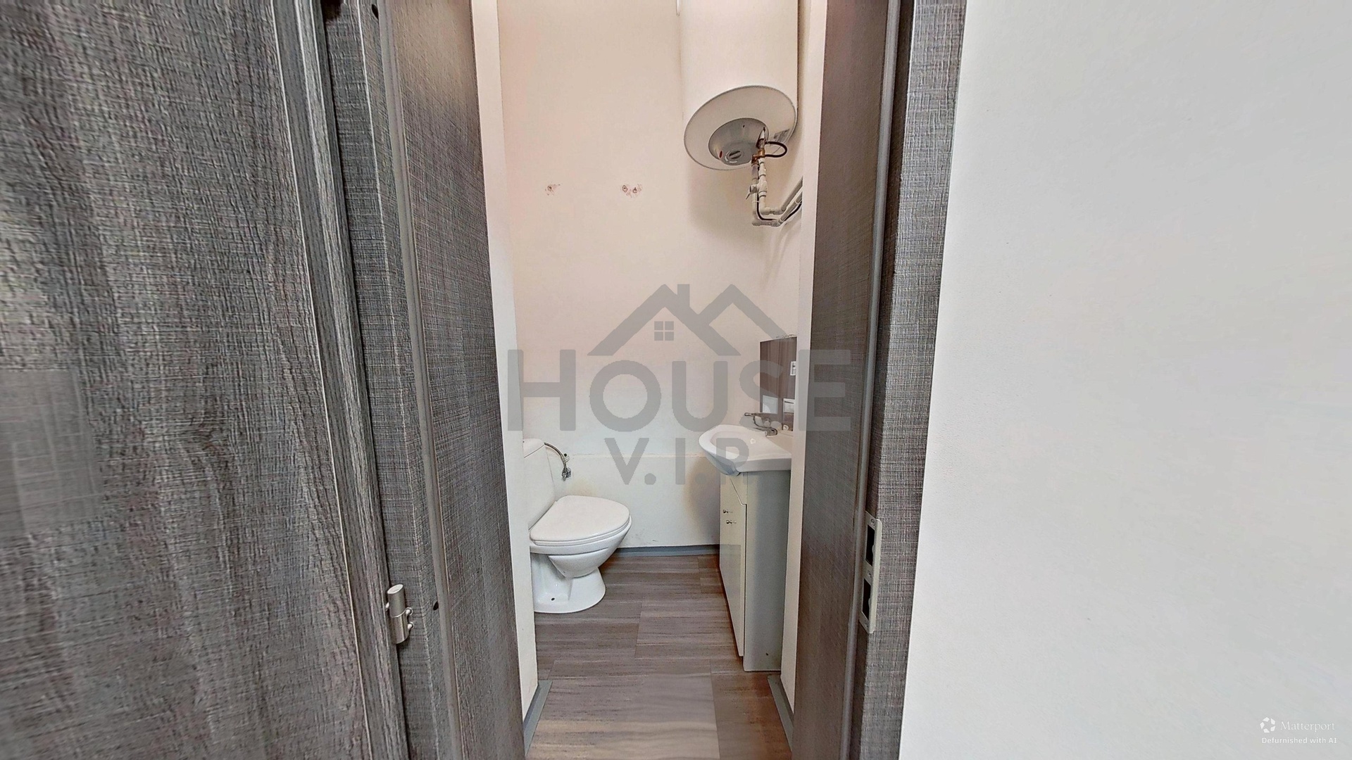 Z této části vede krátké schodiště do vyvýšené části, kde se nachází, předsíň, samostatná místnost s kuchyňkou, samostatné WC, oddělená koupelna se sprchovým koutem.