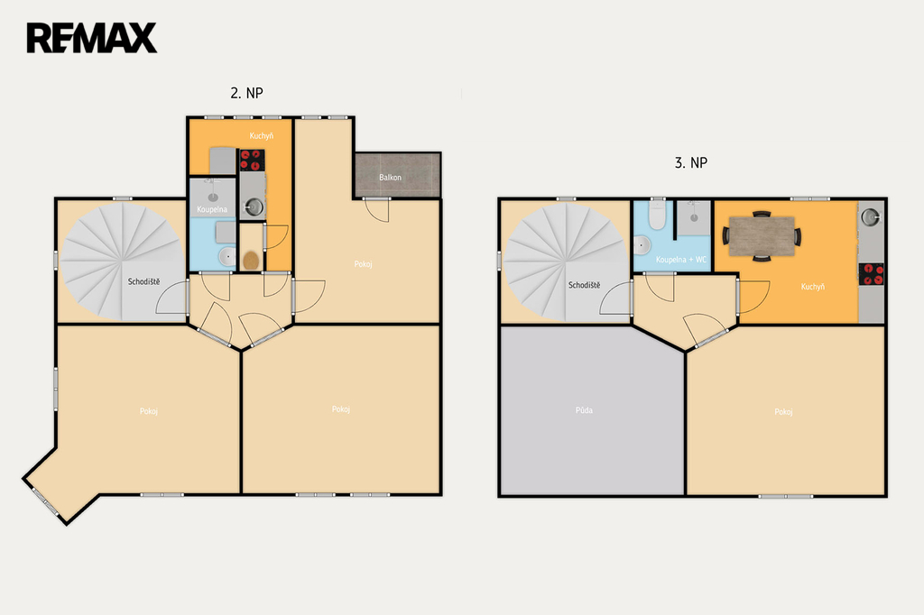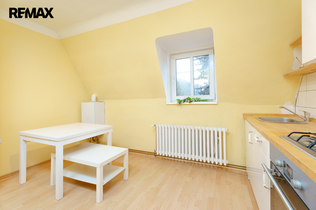 Třetí podlaží je podkrovní, nabízí předsíň, kuchyň, pokoj, koupelnu se sprchou a WC. Také půdu.