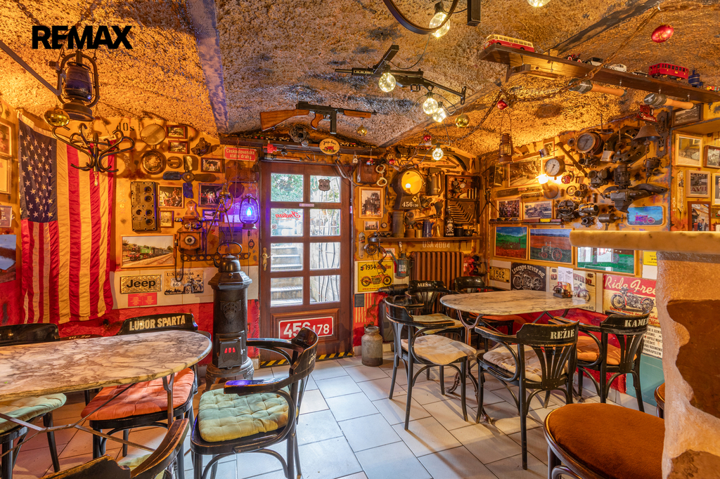 V udržovaném domě s původními dispozicemi jsou dva byty 3+1 v přízemí a v podkroví, v původně sklepních místnostech je známý Jeep Bar elegantně propojený s venkovním posezením. Přístavbou lehkého přístřešku pak vznikl prostor pro parkování tří vozidel. Nechybí garáž přístupná přímo z ulice. Dům je napojen na všechny v místě obvyklé inženýrské sítě.