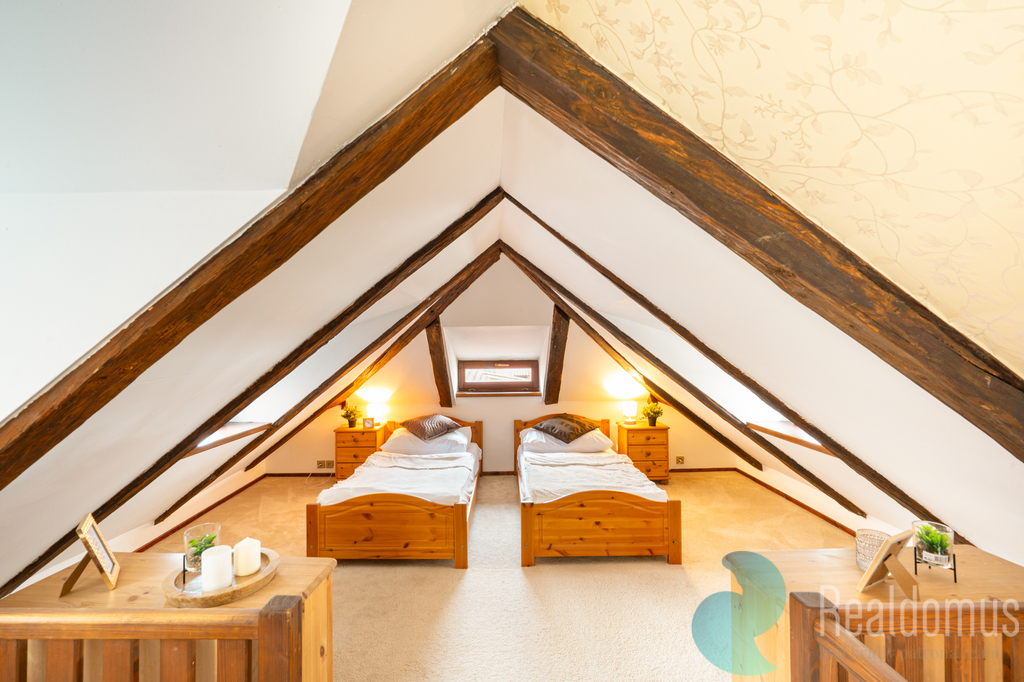 Horní patro bytu tvoří soukromá zóna s ložnicemi, které nabízejí klid, pohodlí a dostatek soukromí.