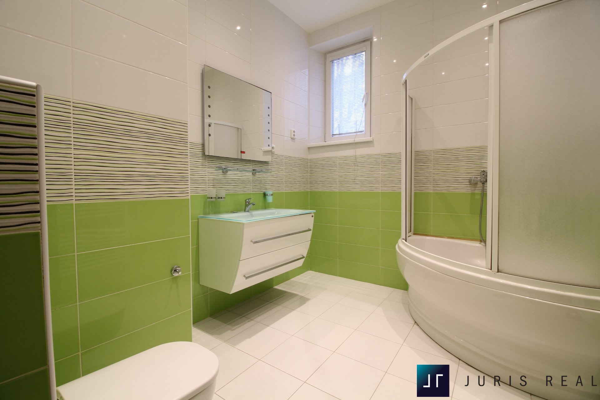 Koupelna je vybavena vanou se sprchovou zástěnou, topným žebříkem a WC. Druhé samostatné WC je přístupné z chodby.