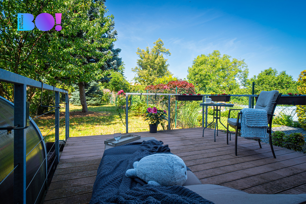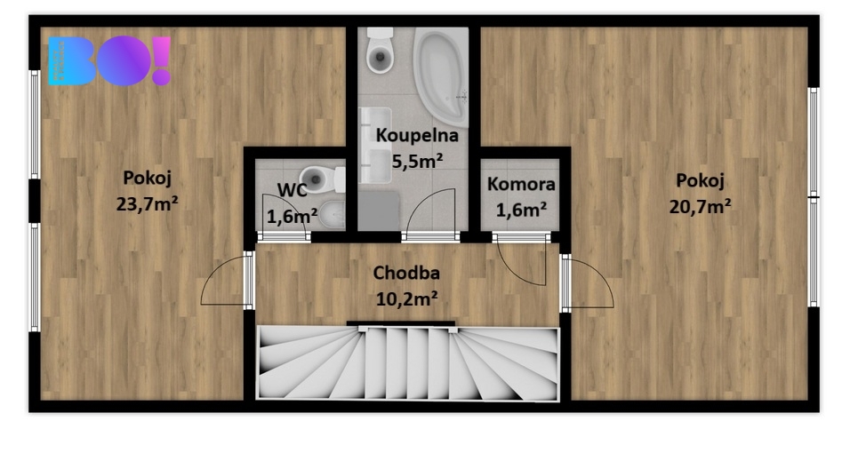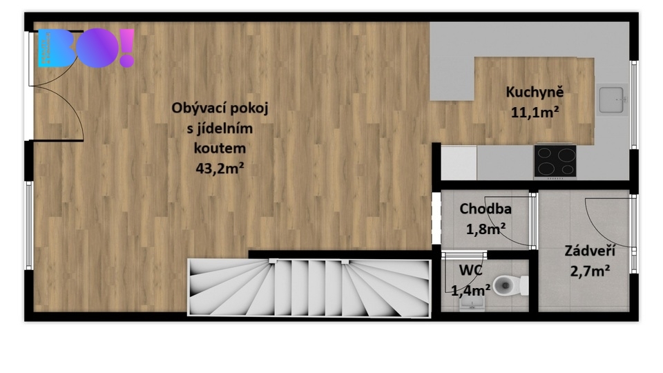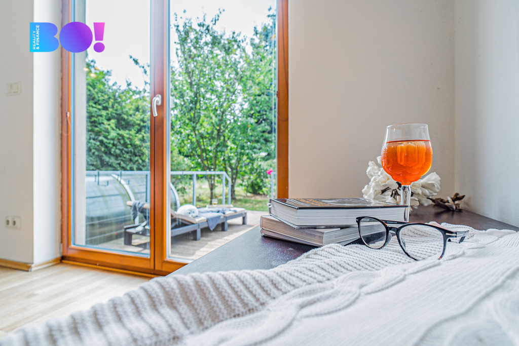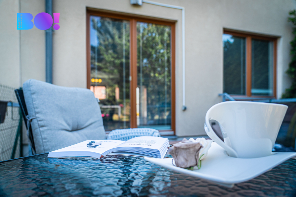 Propojení kuchyně s obývacím pokojem nabízí 55 m² otevřeného prostoru s velkým množstvím denního světla – vysoké stropy a velká okna vytváří vzdušný dojem, který nebývá v řadových domech obvyklý. V domě jsou dvě koupelny a každé patro má min. 1 WC, což je komfortní i pro větší rodinu nebo zástupce více generací. Všechna okna jsou opatřena žaluziemi. V celém domě naleznete kvalitní dřevěné masivní podlahy, dveře a zárubně i dřevěná střešní okna Velux a nadčasový design.