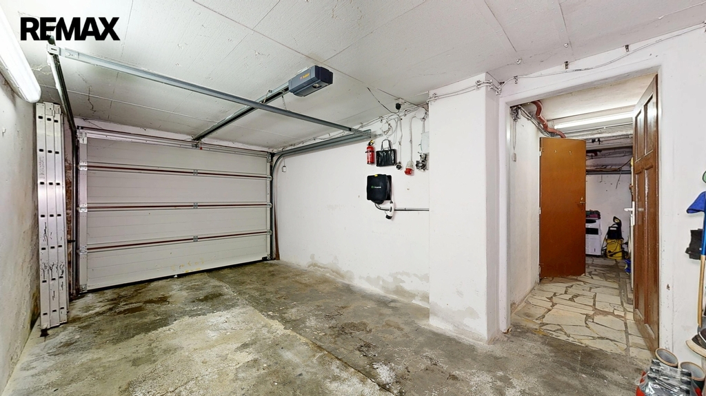 Dům je dvoupodlažní, plně podsklepený a disponuje také prostornou půdou, která nabízí další potenciál využití. V suterénu se nachází sklepní prostory o ploše 52 m², vhodné jako technické zázemí, sklad či dílna, a dále garáž. Před garáží je k dispozici další parkovací stání.
