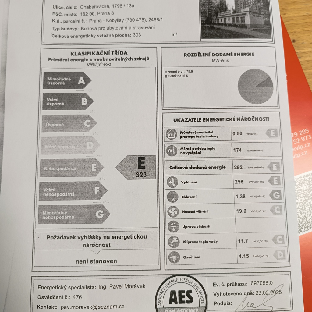 - Ukazatel energetické náročnosti budovy: 323 kWh/m²