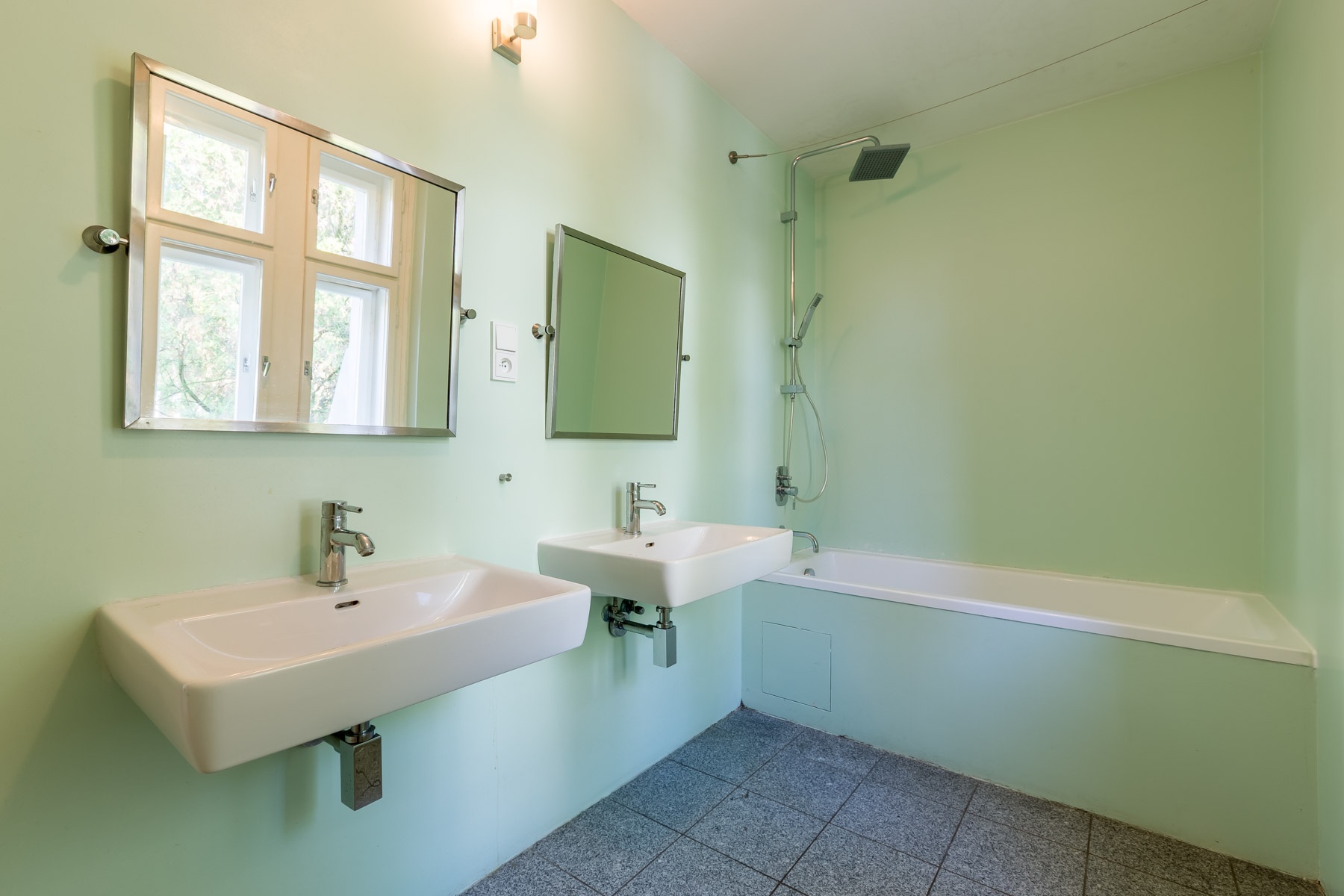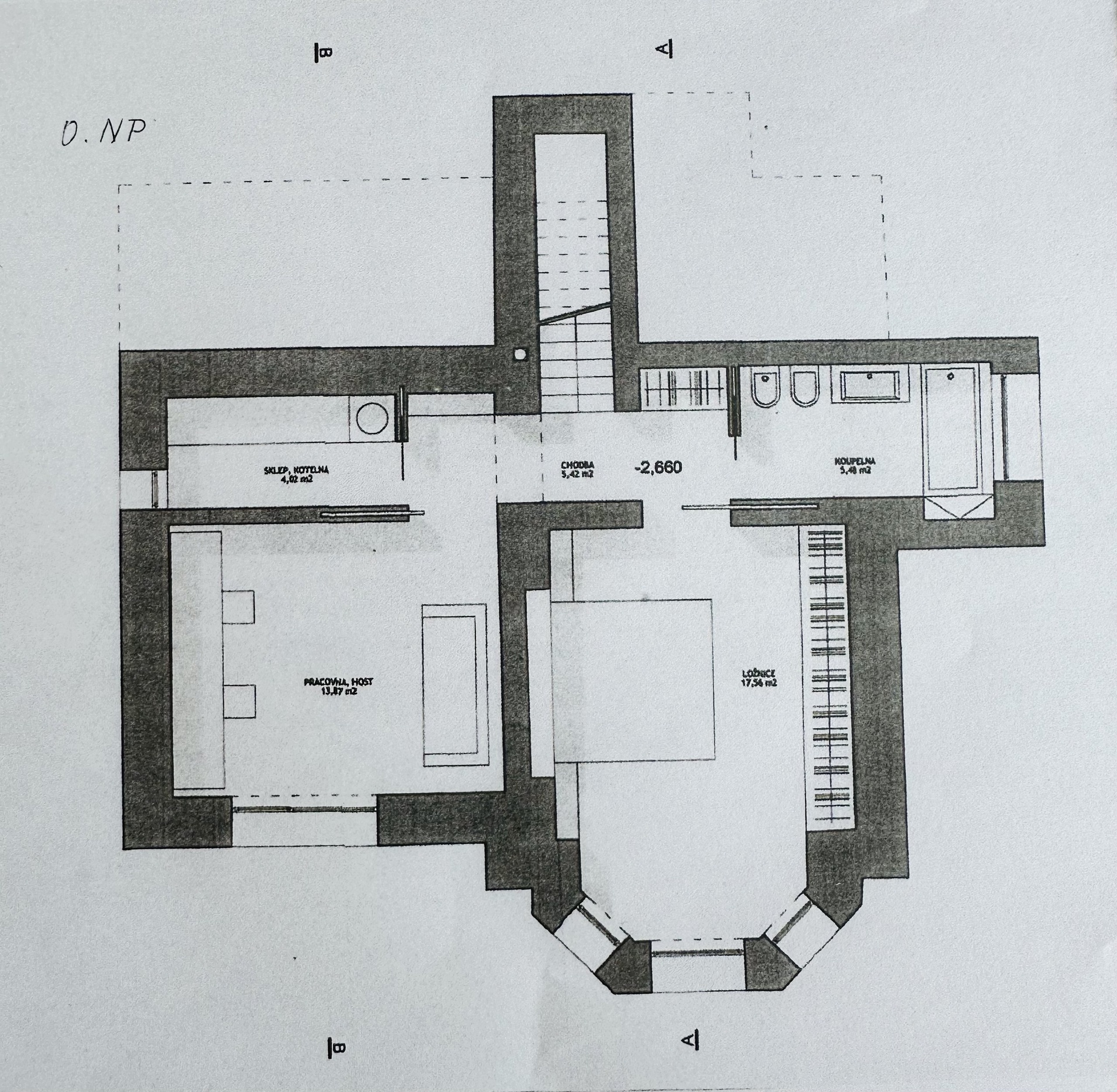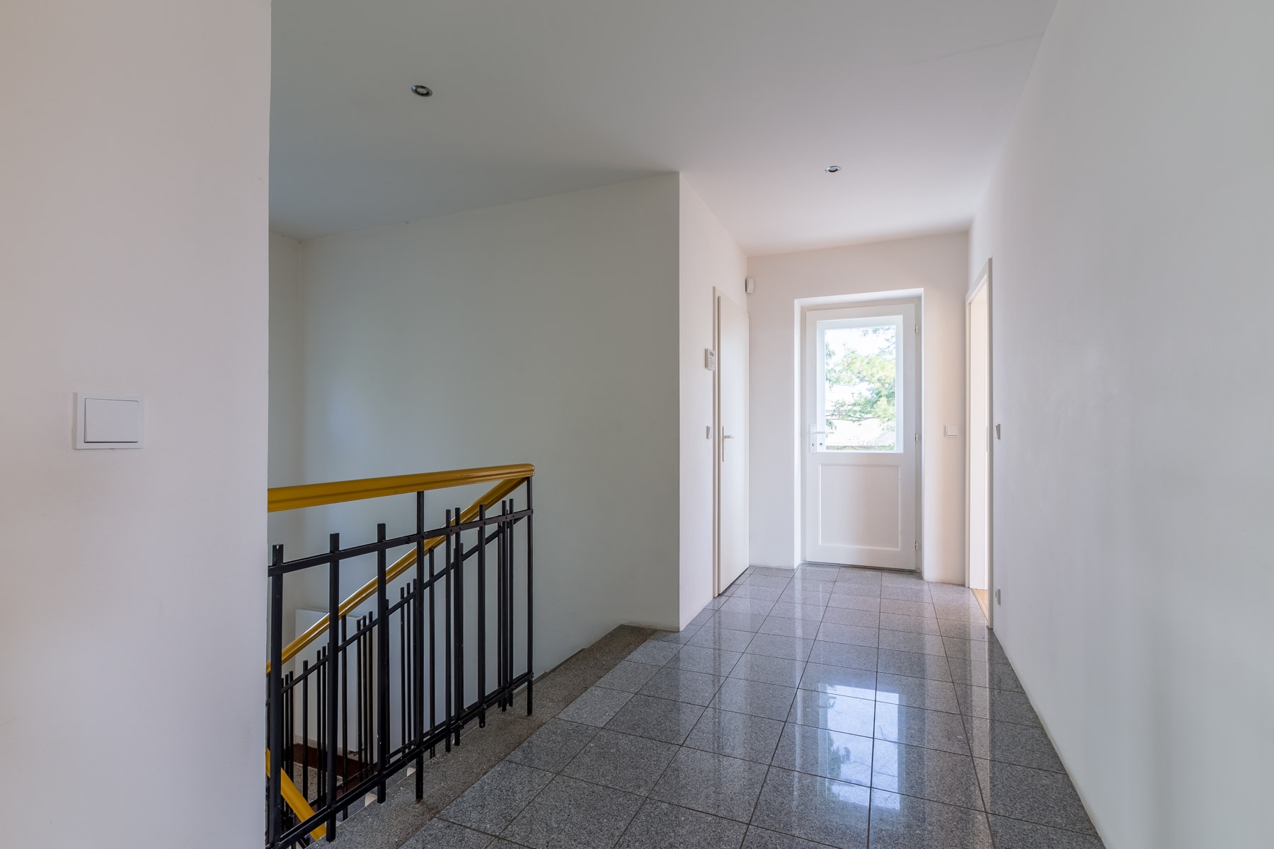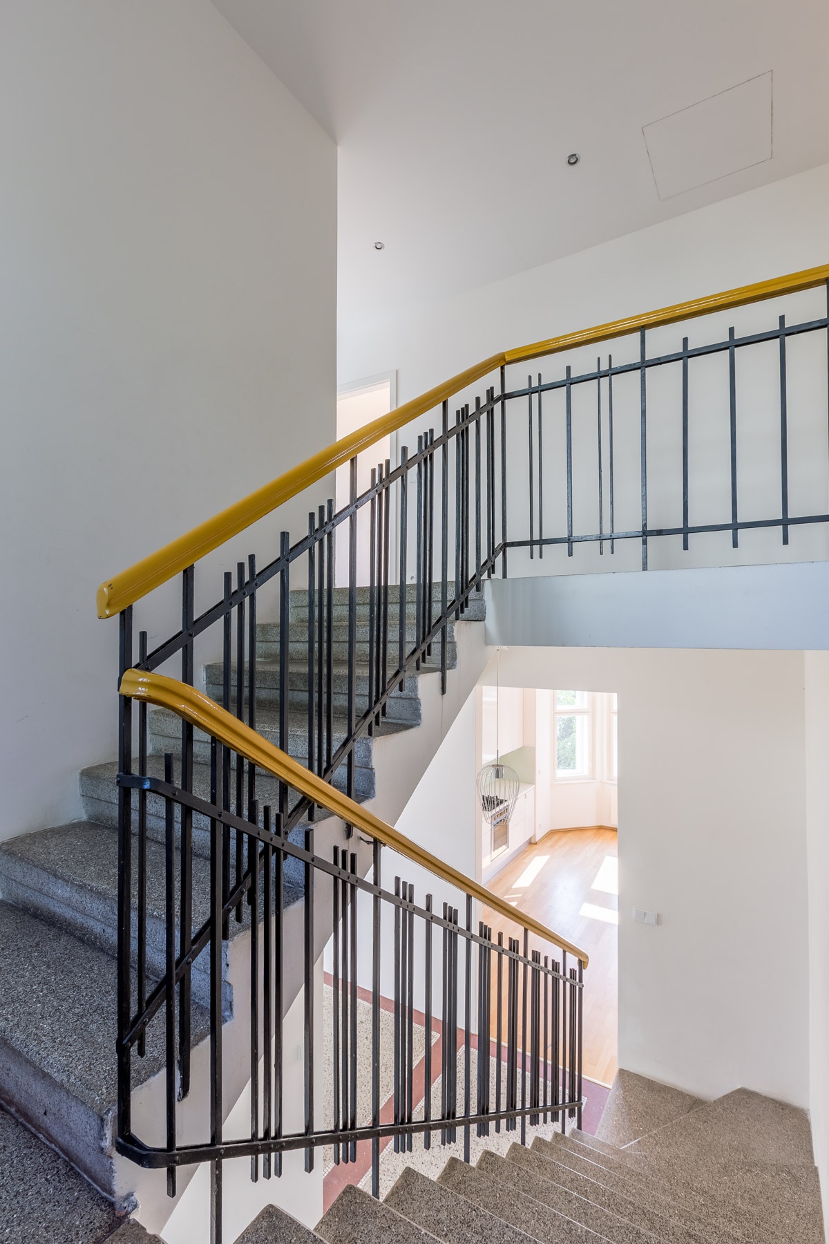 První a druhé podlaží spojuje renovované původní kamenné schodiště s kovovým zábradlím. Ve všech pokojích jsou na podlahách parkety na chodbě a schodišti je původní žulová dlažba, dřevěná okna. Vytápění celého domu a ohřev vody je zajištěno plynovým kotlem Junkers.