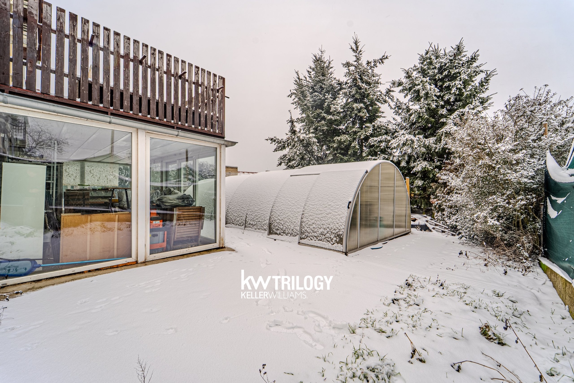 Zahrada je doslova malou oázou klidu. Najdete zde oválný bazén se zastřešením pro prodloužení koupací sezóny, zimní zahradu pro posezení po celý rok a také přípravu na automatické zavlažování. Na pozemek se pohodlně vjíždí vraty na dálkové ovládání a k dispozici jsou tři parkovací místa přímo na vlastním pozemku.