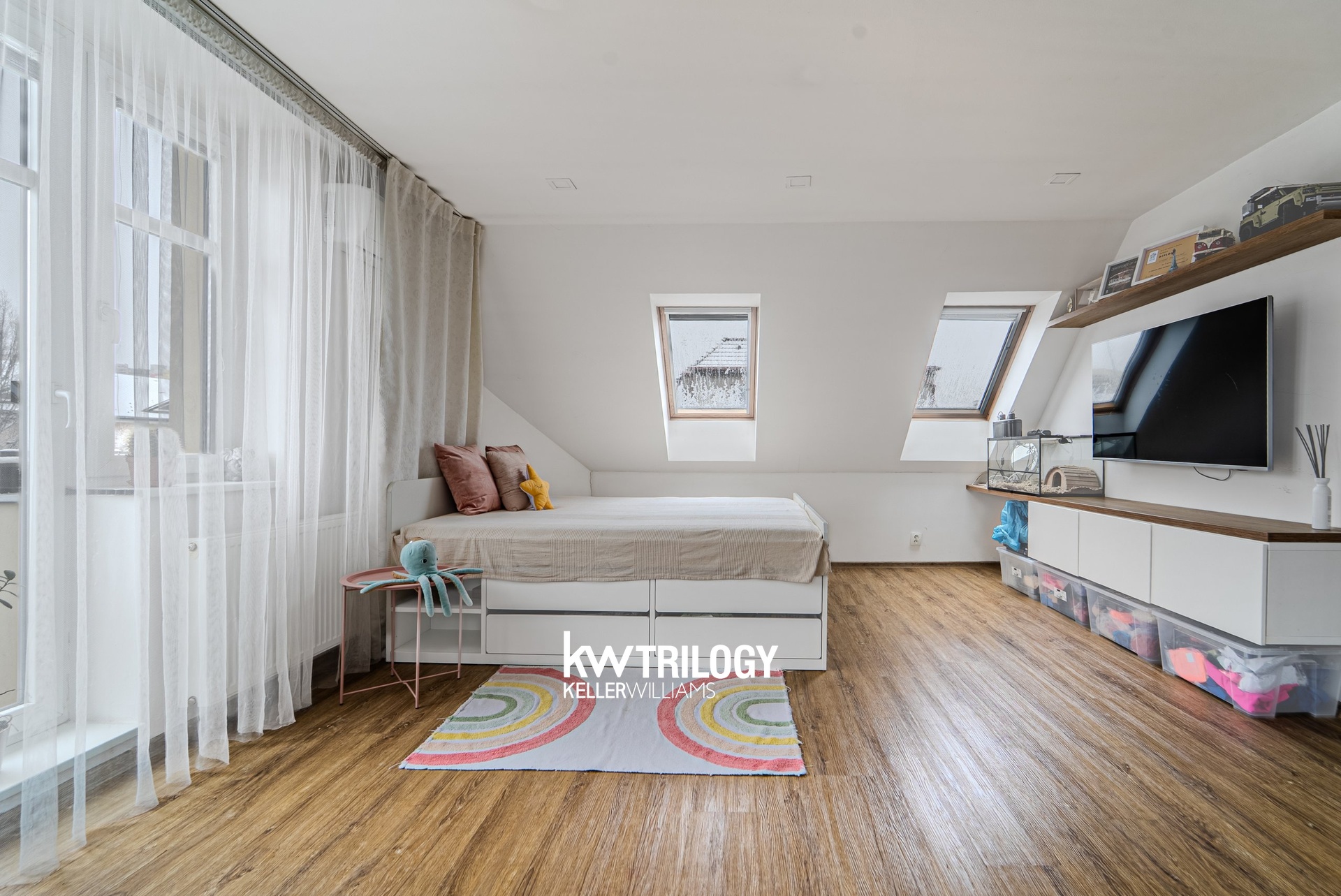 Interiér nabízí dostatek prostoru pro rodinu – světlý obývací prostor s kuchyňským koutem, ložnice i zázemí, které se snadno přizpůsobí vašim potřebám.