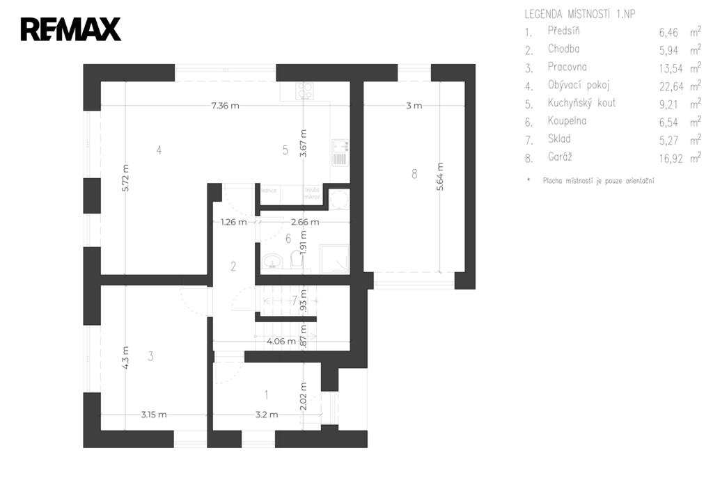 • prostorný obývací pokoj s přímým vstupem na zahradu