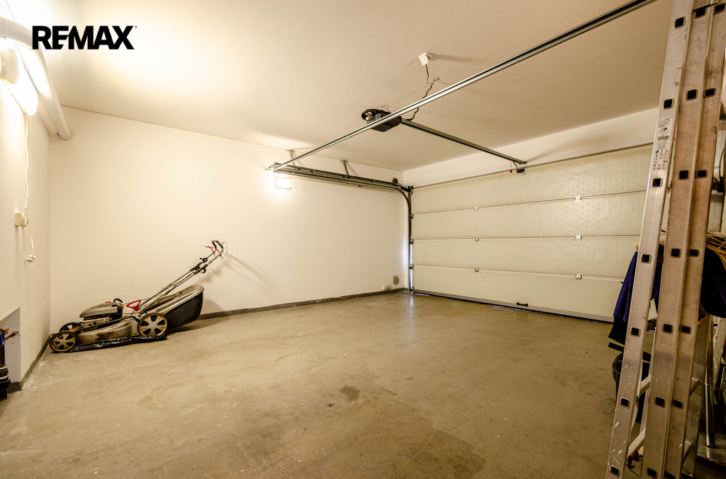 Ze vstupní chodby se vchází do garáže a prostorné místnosti, kde je samostatná toaleta s přípravou pro pračku a sušičku.