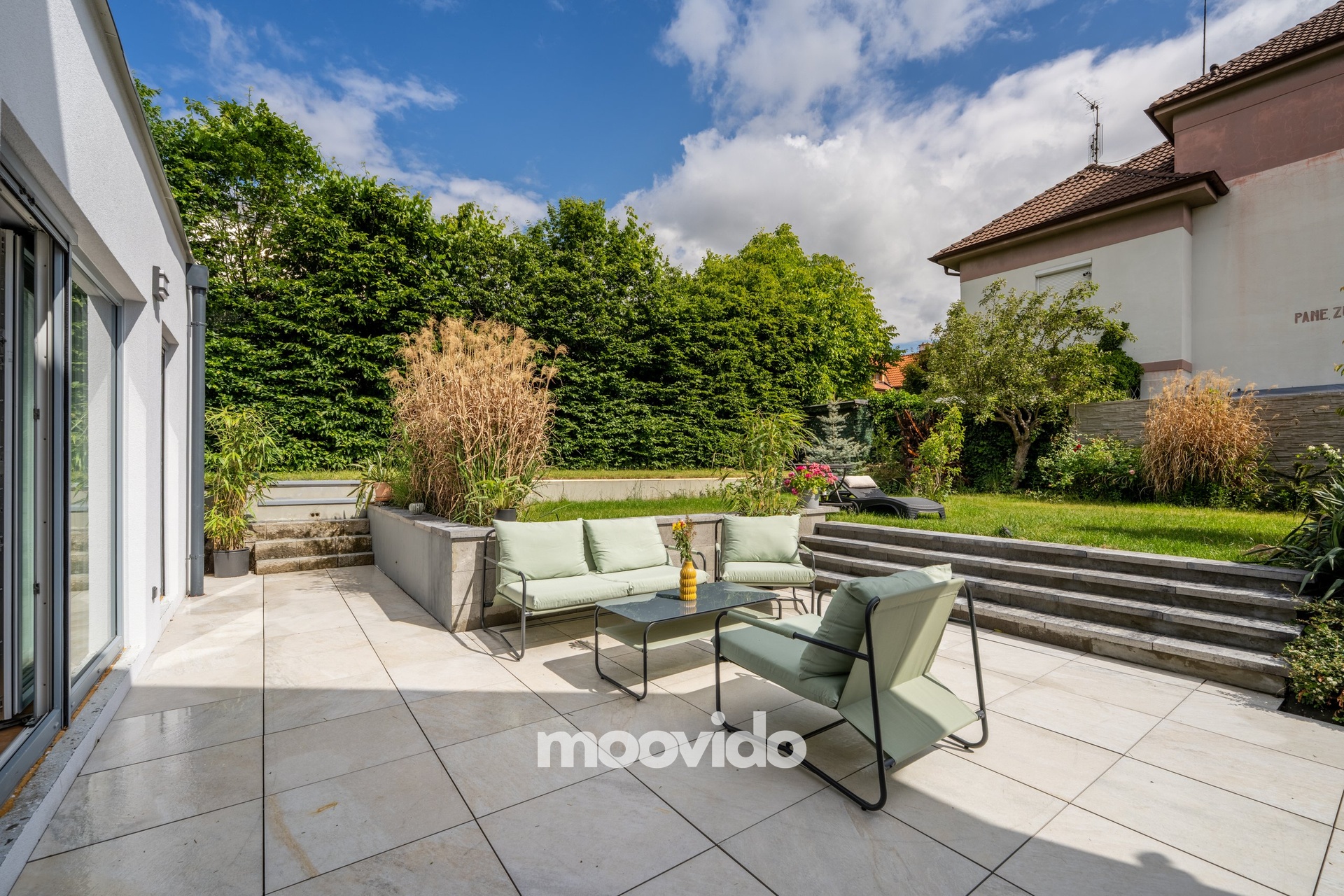 Tato vila je umístěná na pozemku s udržovanou zahradou a vzrostlou zelení o celkové výměře 593 m2. Zastavěná plocha pozemku činní 118 m2, podlahová plocha je 211 m2 a užitná plocha domu je 163 m2. Vila kombinuje komfort města s bydlením v zeleni.