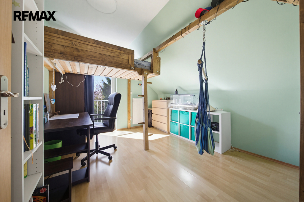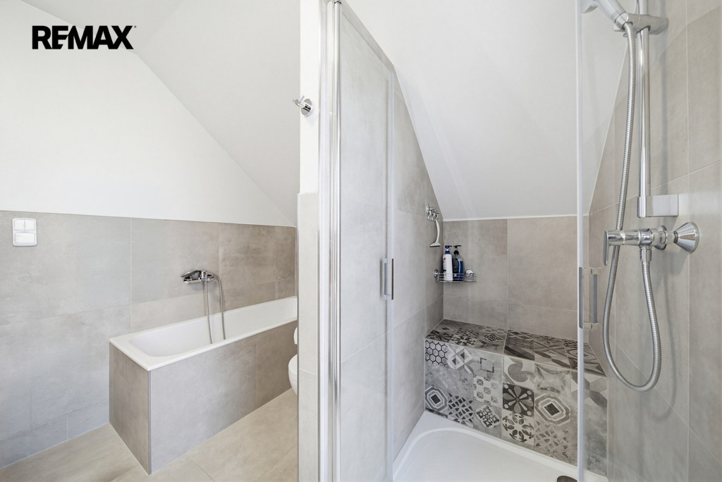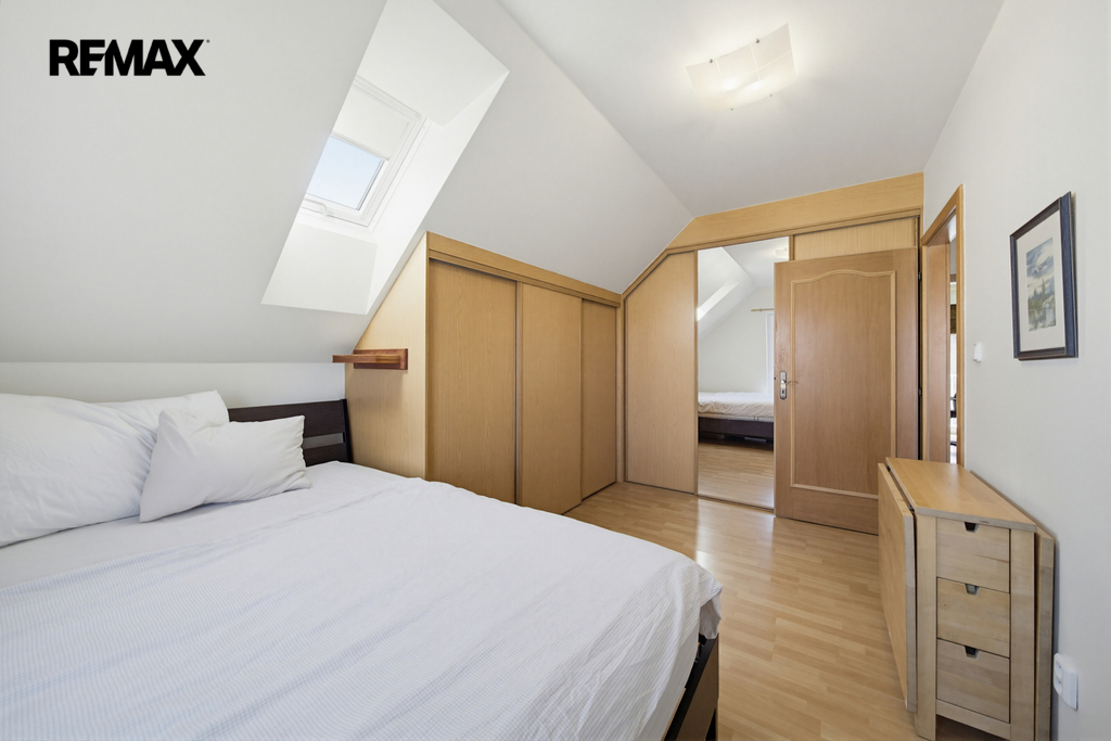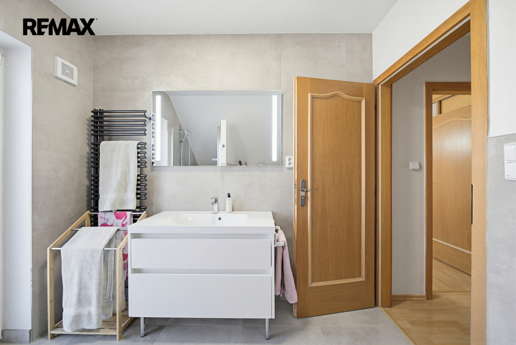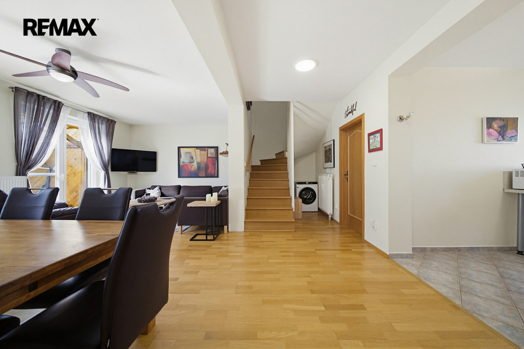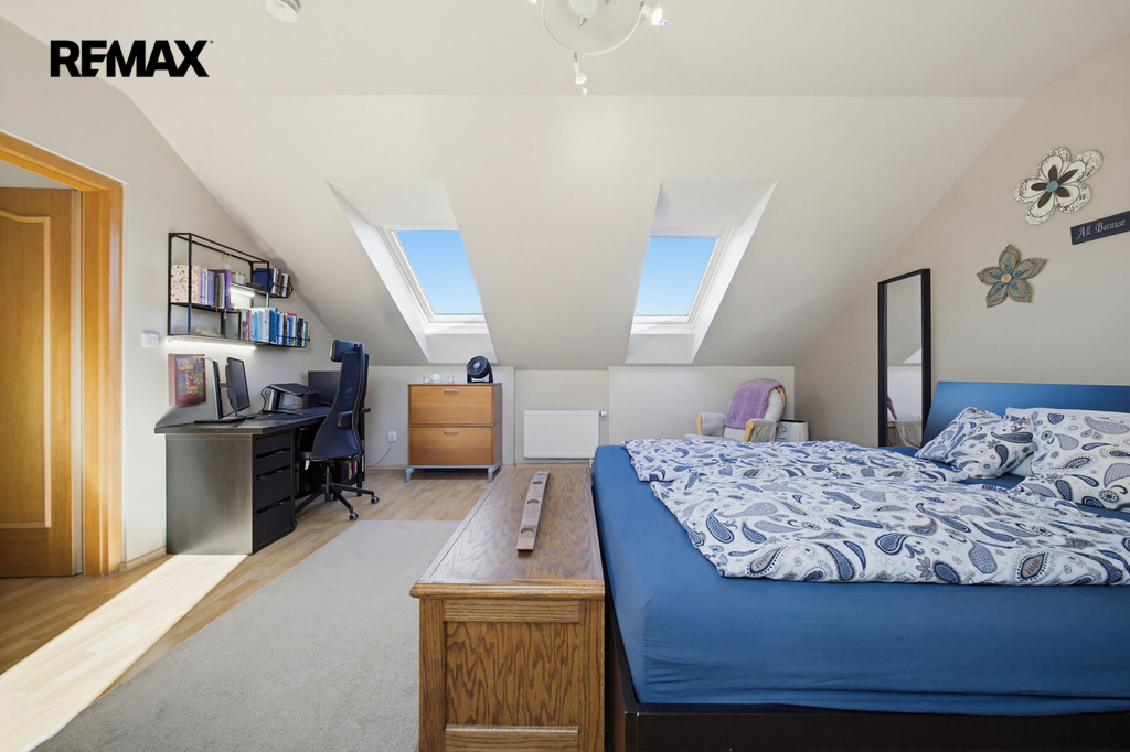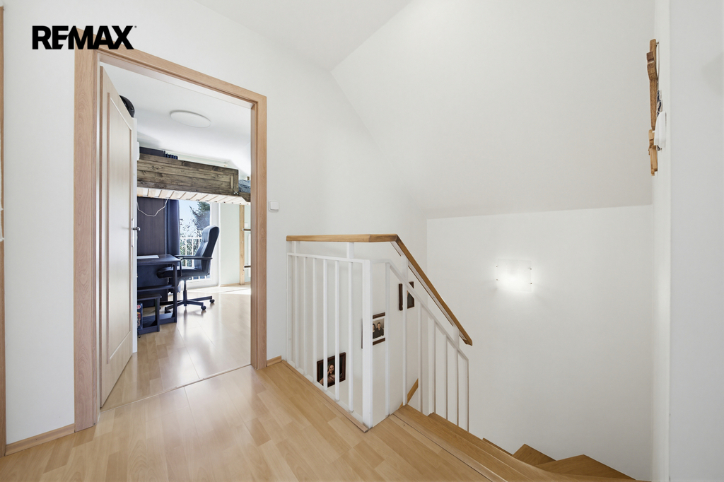 V pokojích v patře jsou praktické vestavěné skříně a všechny pokoje, s výjimkou ložnice, disponují balkonovými dveřmi, díky čemuž jsou příjemně prosvětlené. Na podlahách v celém domě jsou plovoucí podlahy, v koupelnách, kuchyni a předsíni je dlažba. Dům je napojen na veškeré inženýrské sítě a vytápění i ohřev vody zajišťuje plynový kotel. Měsíční zálohy na energie činí přibližně 6.000 Kč + 2.000 Kč voda.