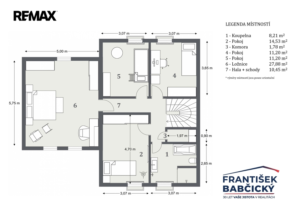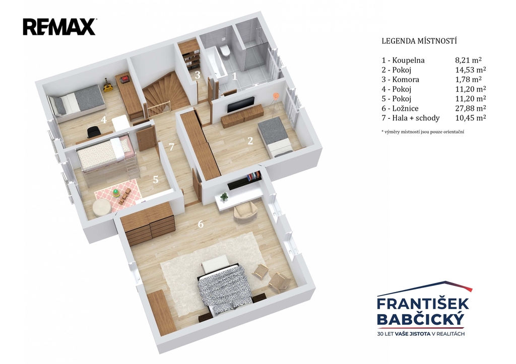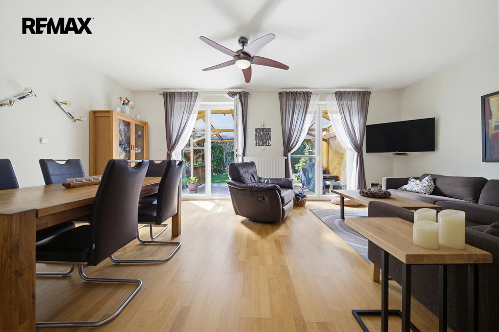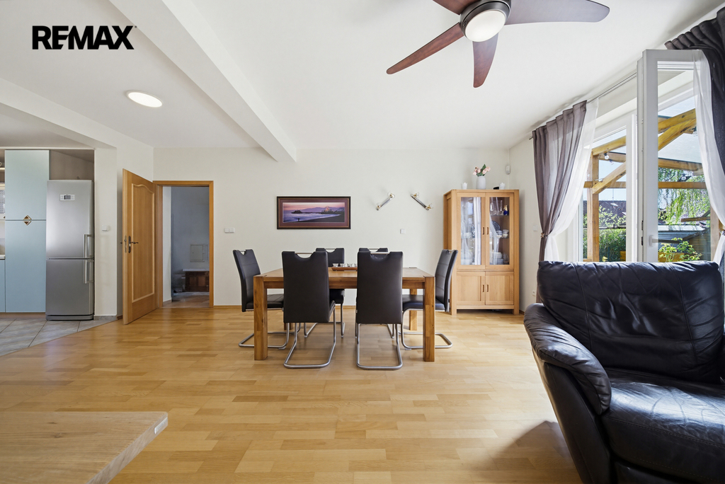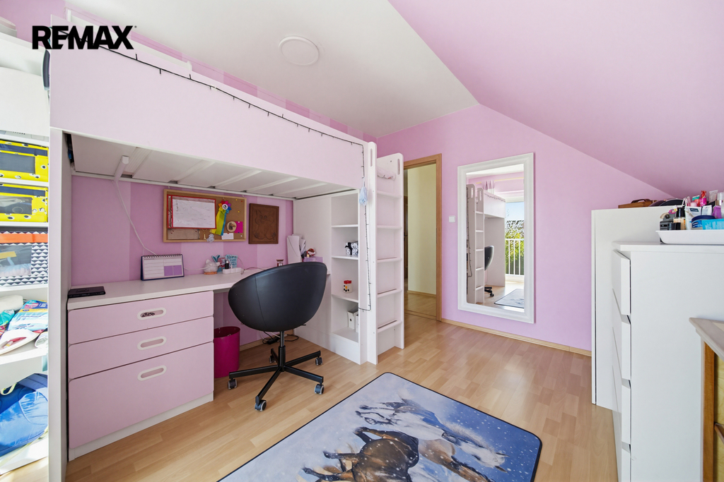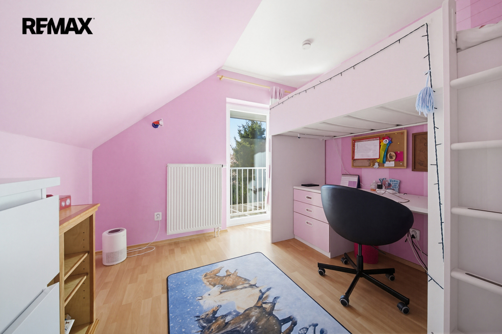 V pokojích v patře jsou praktické vestavěné skříně a všechny pokoje, s výjimkou ložnice, disponují balkonovými dveřmi, díky čemuž jsou příjemně prosvětlené. Na podlahách v celém domě jsou plovoucí podlahy, v koupelnách, kuchyni a předsíni je dlažba. Dům je napojen na veškeré inženýrské sítě a vytápění i ohřev vody zajišťuje plynový kotel. Měsíční zálohy na energie činí přibližně 6.000 Kč + 2.000 Kč voda.