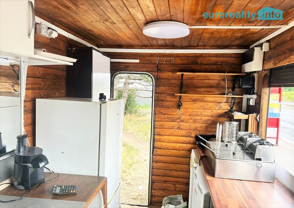 Stánek je zánovní a je připraven k okamžitému provozu. Vybavení: lednice, mrazák, pracovní pulty a police, fritéza, grilovací zařízení, dřez s rozvody vody, elektrické rozvody, osvětlení, venkovní výdejní okno s roletami, reklamní cedule s jídelním lístkem (možno ponechat nebo odstranit).