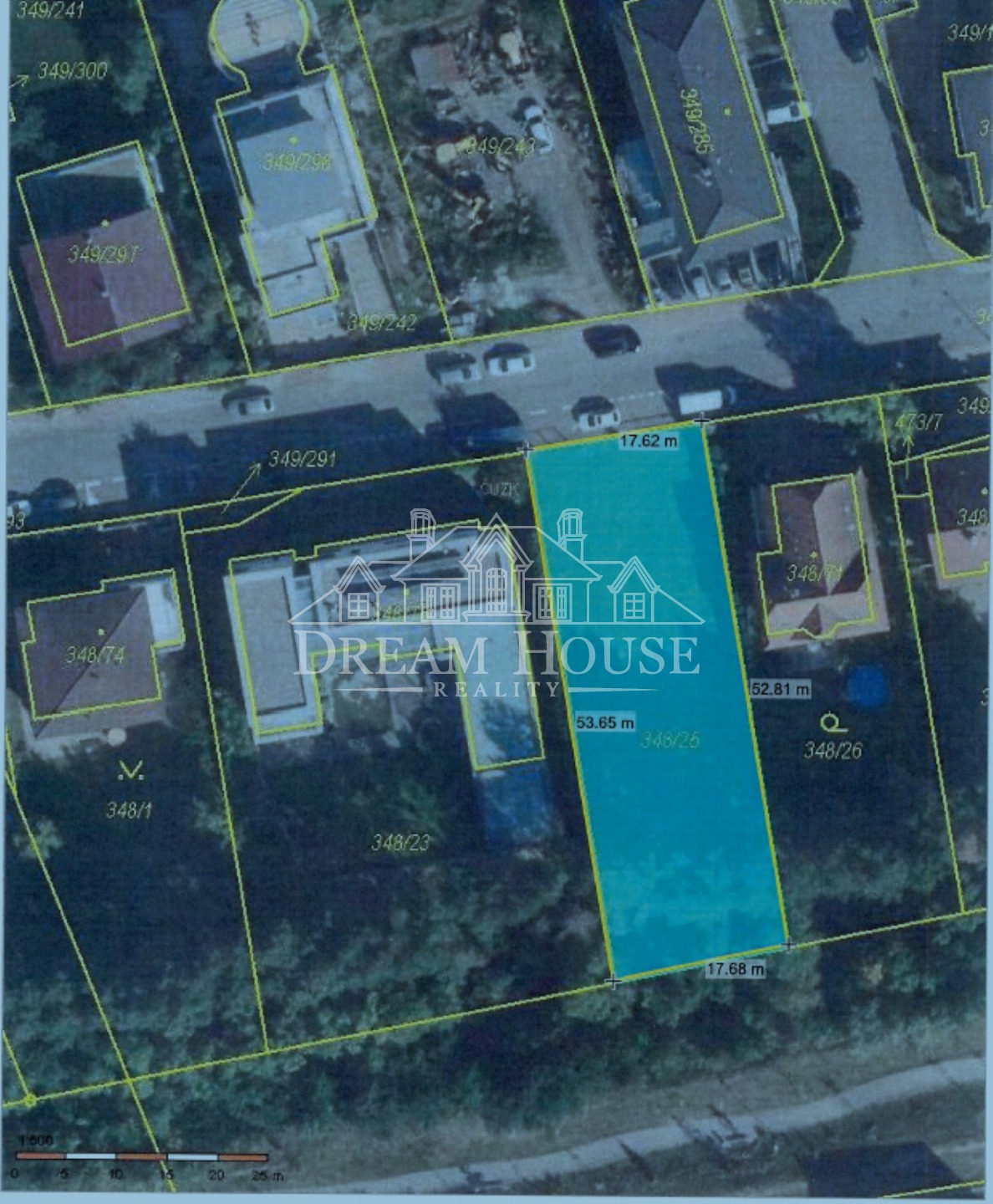 Jedná se o mírně svažitou parcelu pravidelného obdélníkového tvaru (cca 17x55 m) v zástavbě rodinných domů.
