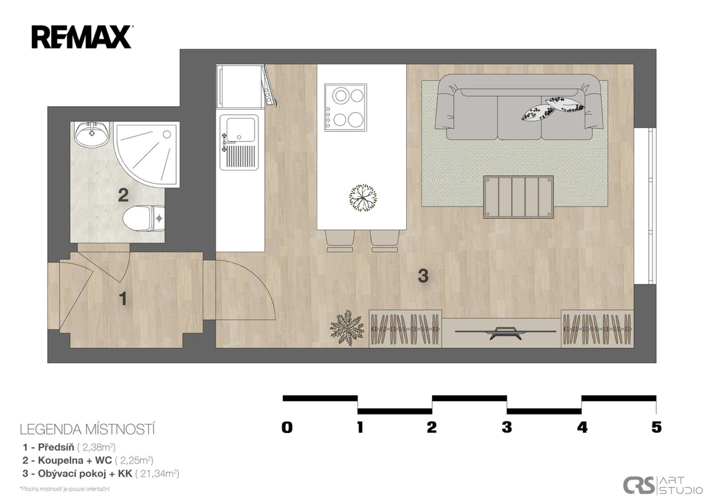 - Dispozice bytu: 1+kk