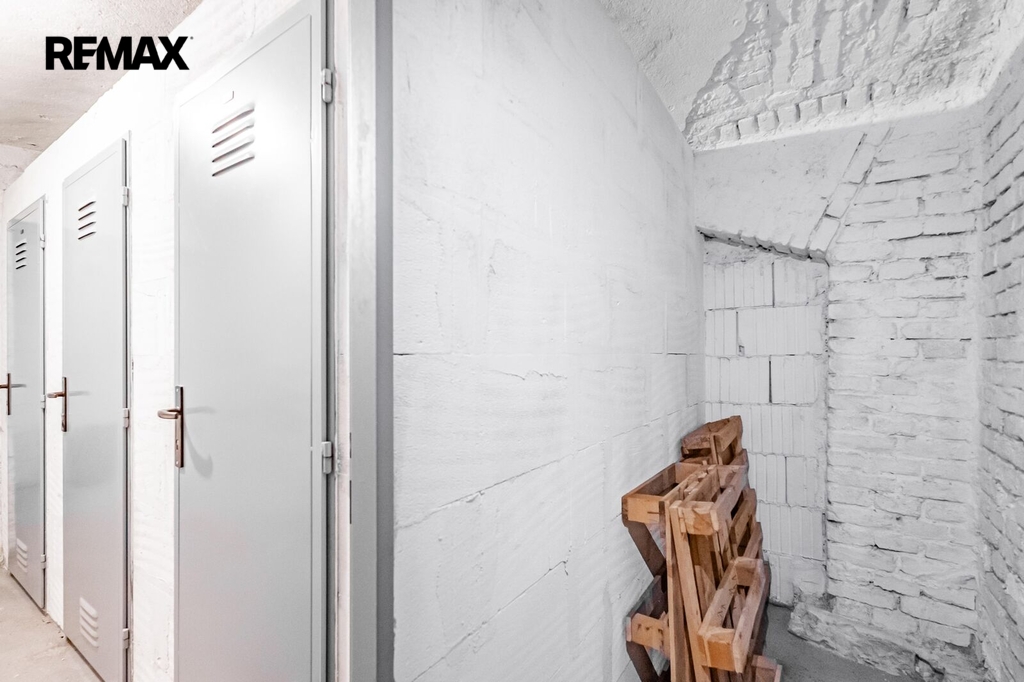 Jednotka se skládá ze vstupní předsíně, obývacího pokoje s kuchyňskou linkou s vestavěnými spotřebiči (včetně lednice, myčky nádobí a pračky), barového pultu s varnou deskou a elektrickou troubou a koupelny s toaletou a sprchovým koutem. V obývacím pokoji je k dispozici dostatek úložných prostor nejen v barovém ostrůvku, ale též ve skříních a policích. Byt je vytápěn podlahovým topením, které pohodlně ovládáte instalovanými termostaty v každé místnosti. Majiteli je k dispozici také prostorná sklepní kóje v suterénu domu.