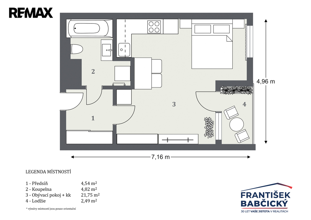 | Dispozice/podlahová plocha: | 1+kk/34 m² |