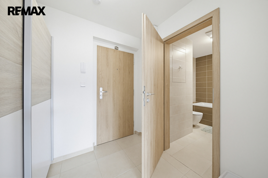 Byt o celkové ploše 32 m² nabízí prakticky řešený obytný prostor s plně vybaveným kuchyňským koutem 21,75 m², ze kterého je přímý vstup na lodžii o velikosti 2,49 m². Byt dále tvoří prostorná předsíň 4,54 m² se skříní, koupelna s vanou a toaletou a prostorem na pračku 4,82 m². K bytu náleží sklep o velikosti 2,28 m², umístěný v suterénu domu.