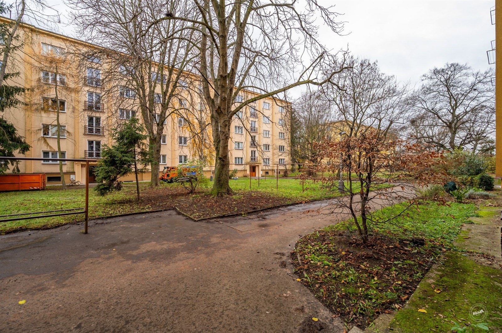 K bytu náleží také prostorná sklepní kóje v suterénu (4 m²). Dům je zateplený s novou střechou a ve velmi dobrém stavu, s nízkými provozními náklady – 3 058 Kč měsíčně (z toho fond oprav 1 040 Kč). Vytápění je centrální kotelnou v domě, parkování je možné na ulici.