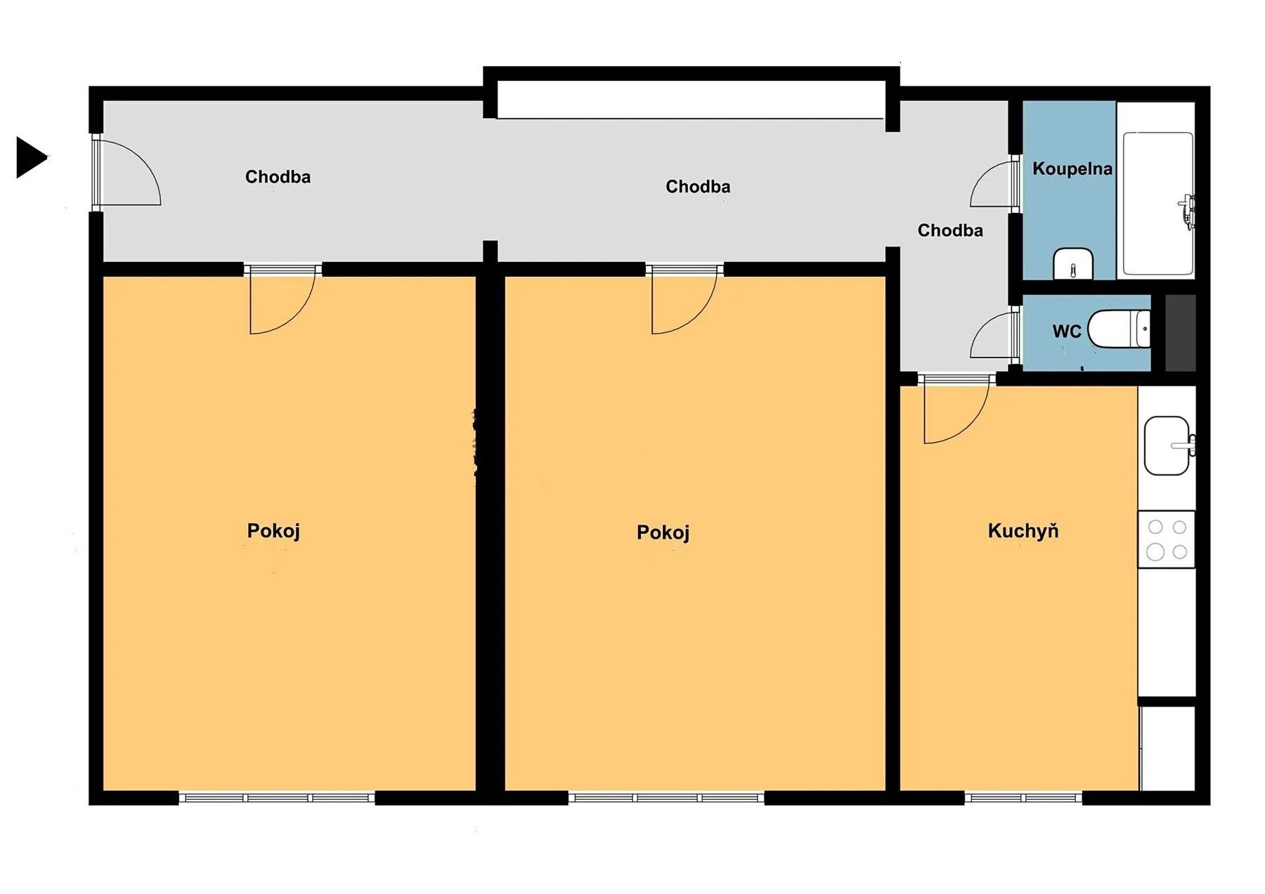 - Dispozice bytu: 2+1