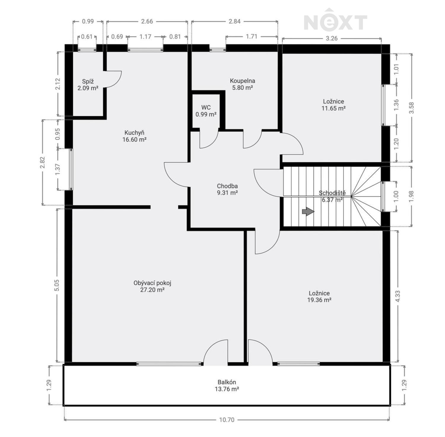 Dům je ve velmi dobrém technickém stavu. Byt v 2. nadzemním podlaží prošel kompletní rekonstrukcí – nové rozvody, koupelna, kuchyně i podlahy.