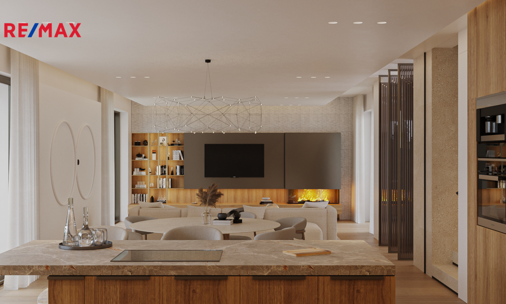 Dispozice 8+kk nabízí velkorysé a promyšlené uspořádání, které splní nároky i nejnáročnějších klientů. Srdcem domu je rozsáhlá společenská část určená pro obývací pokoj, jídelnu s kuchyňským koutem a komorou, ideální pro každodenní rodinný život i společenská setkání. Součástí prostoru je také oddělená herna s vlastní koupelnou a přímým vstupem k bazénu, která nabízí perfektní zázemí pro relax i zábavu.