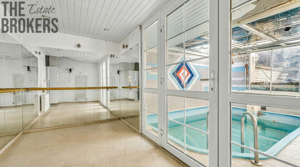 Součástí nemovitosti je také bazén, který spolu se zahradou nabízí příjemné zázemí pro relaxaci a soukromí v klidném rezidenčním prostředí.