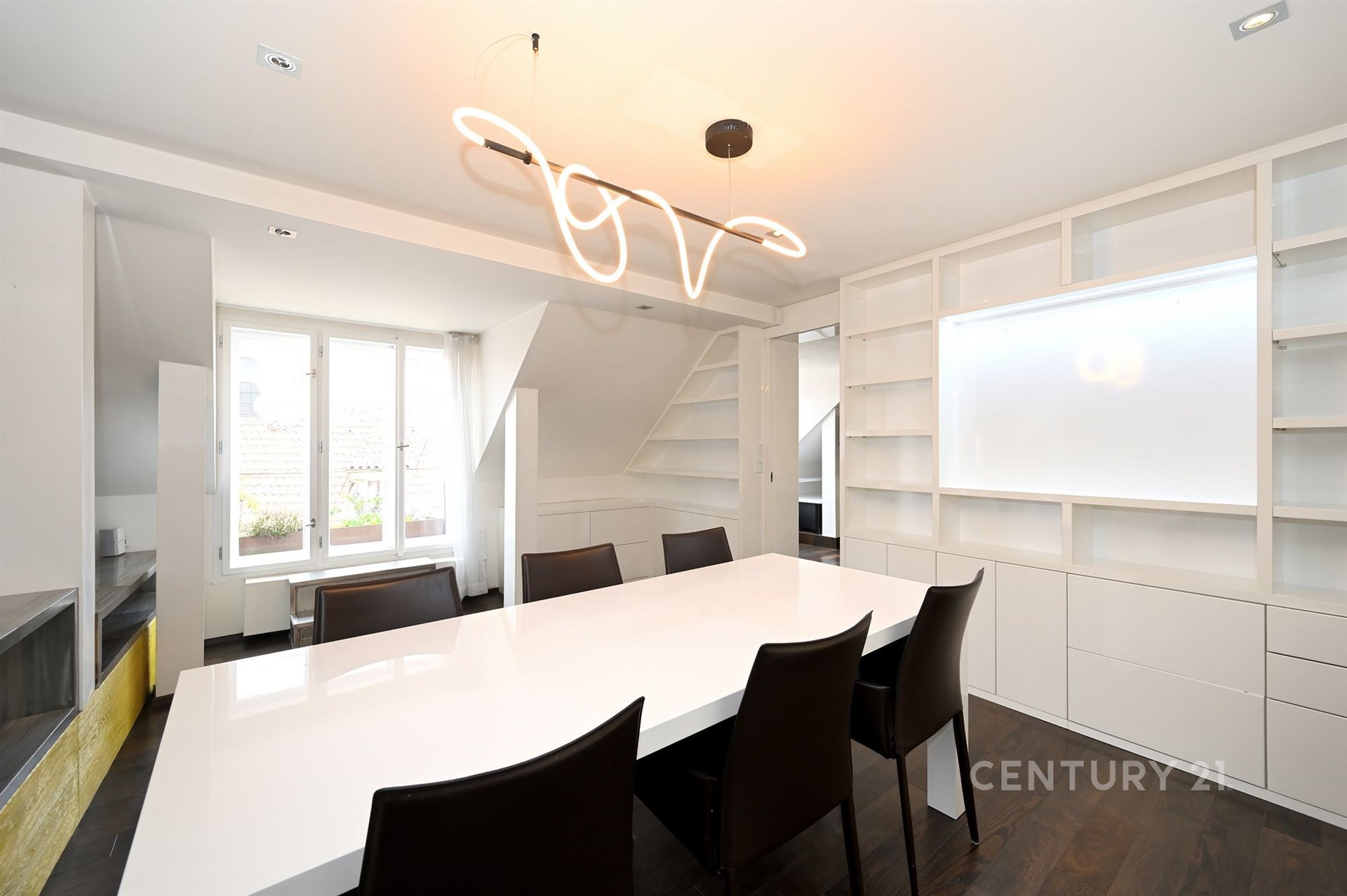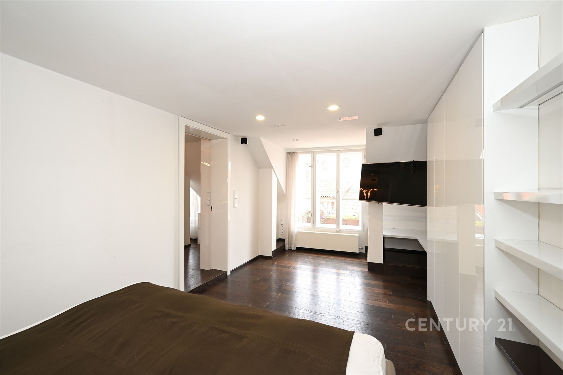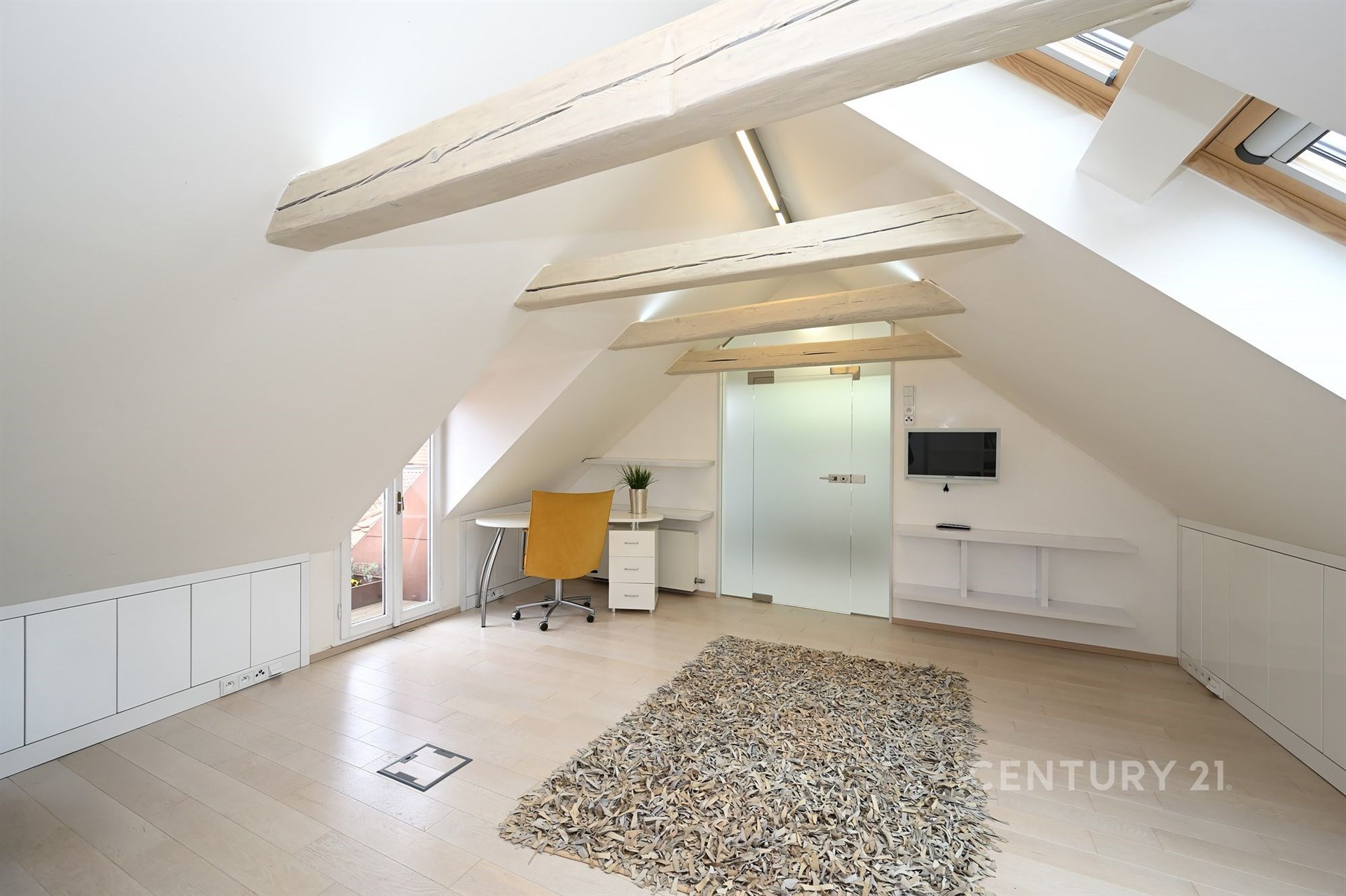 Byt zabírá celou horní polovinu domu, která není vidět z ulice. Byl vybudován v polovině devadesátých let a nedávno prošel kompletním redesignem s použitím nejmodernějších a nejkvalitnějších materiálů. Od té doby nebyl trvale užíván, takže nenese významné stopy opotřebování a působí téměř jako nový. Většina nábytku je jeho trvalou součástí, což umožňuje okamžité užívání bez nutných úprav.