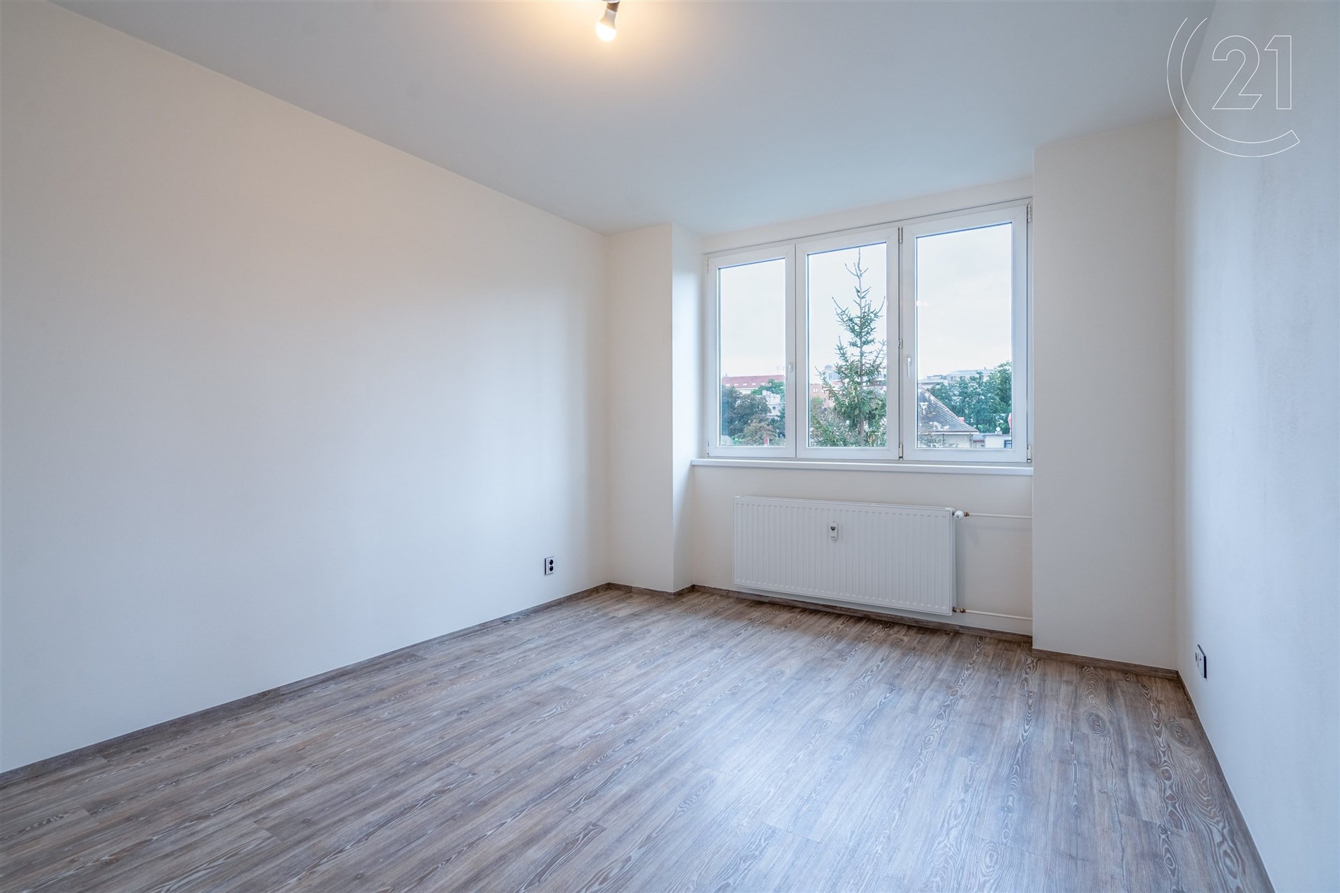 Ložnice a kuchyně je směrem na sever (výhled na Vinohradskou nemocnici), obývací pokoj pak směrem na jih (výhled do dvora se zelení, lavičky, hřiště).