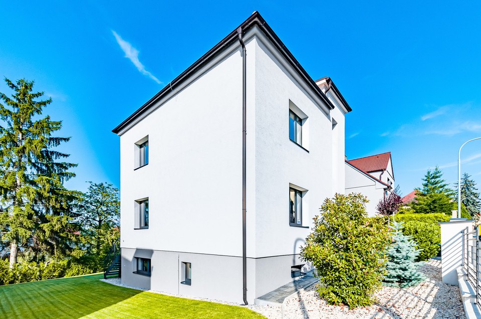 Nadstandardní nové vybavení v celém domě zahrnuje kompletně vybavená kuchyňská linka e spotřebičemi, hliníková okna REYNAERS COATEX s izolačními trojskly, masivní hliníkové vstupní REYNAERS COATEX, interiérové dveře lakované v šedém designu, původní restaurované schodiště, dřevěné podlahy, podlahové topení v koupelně, nový plynový kotel, špičkově vybavené koupelny s obklady v dekoru šedého mramoru, umělé zavlažování kompletně v celé zahradě okolo domu, jímka na dešťovou vodu, zcela nové oplocení se zdobeným kováním zhotoveném na míru, pohon vjezdových vrat na dálkové ovládání.
