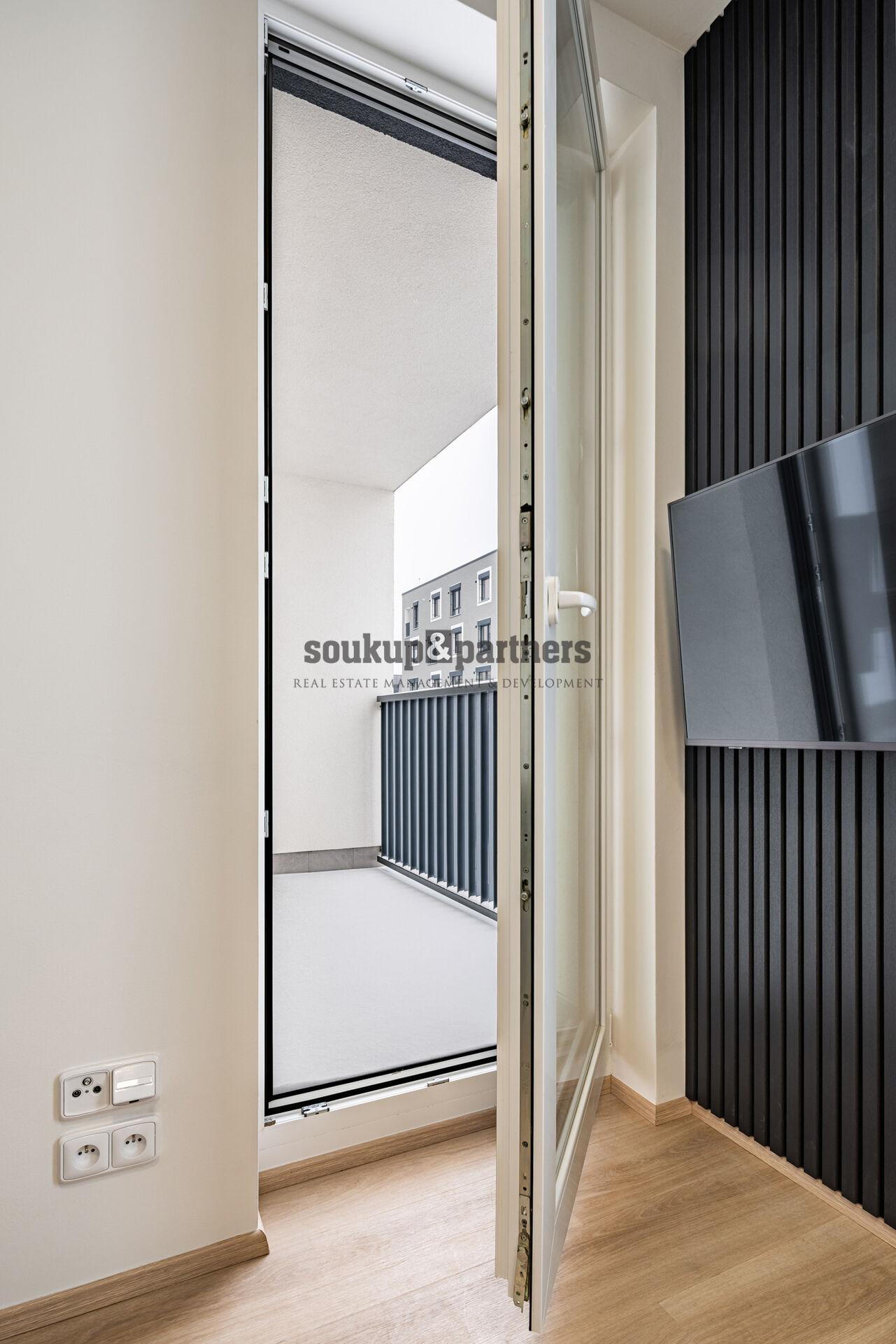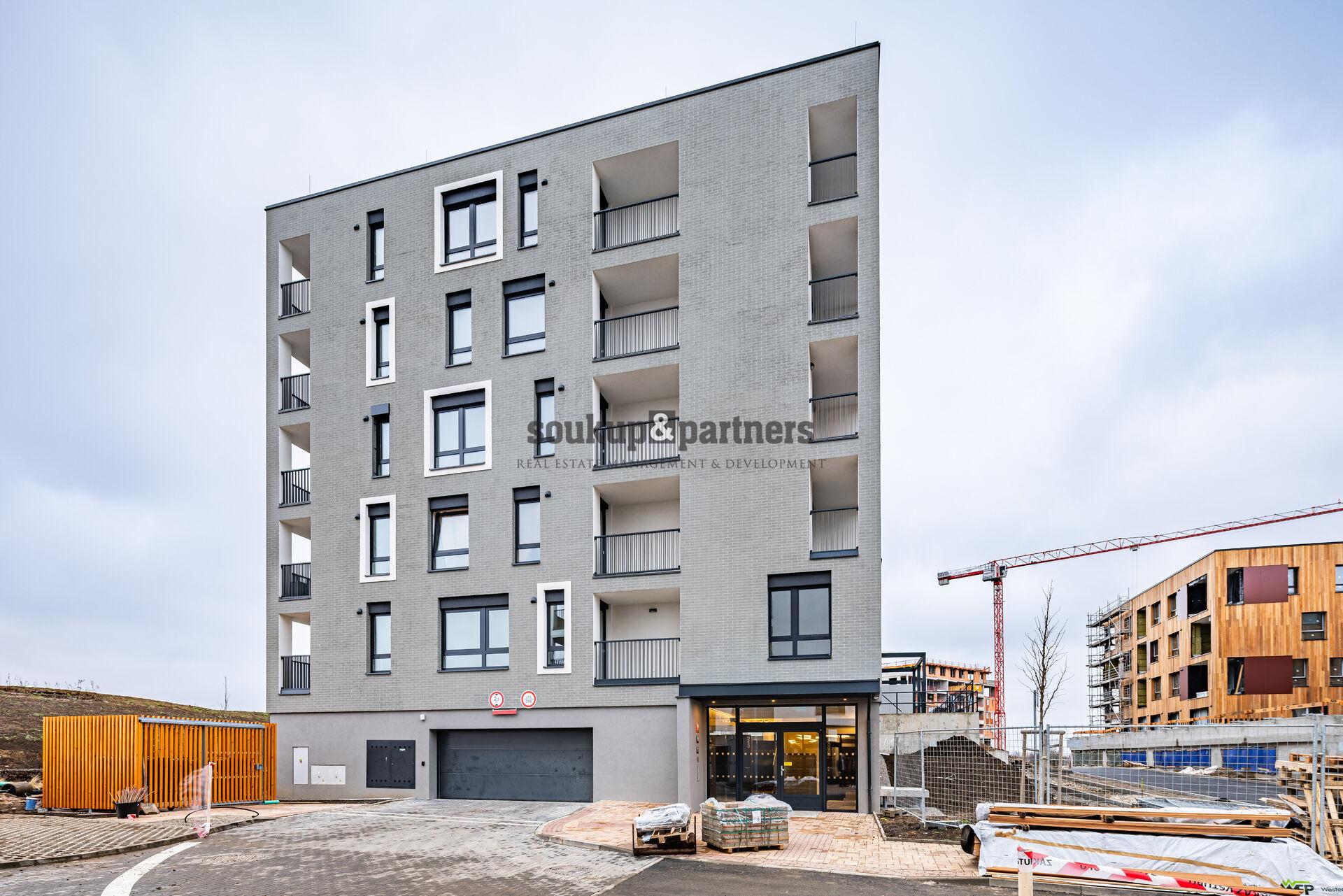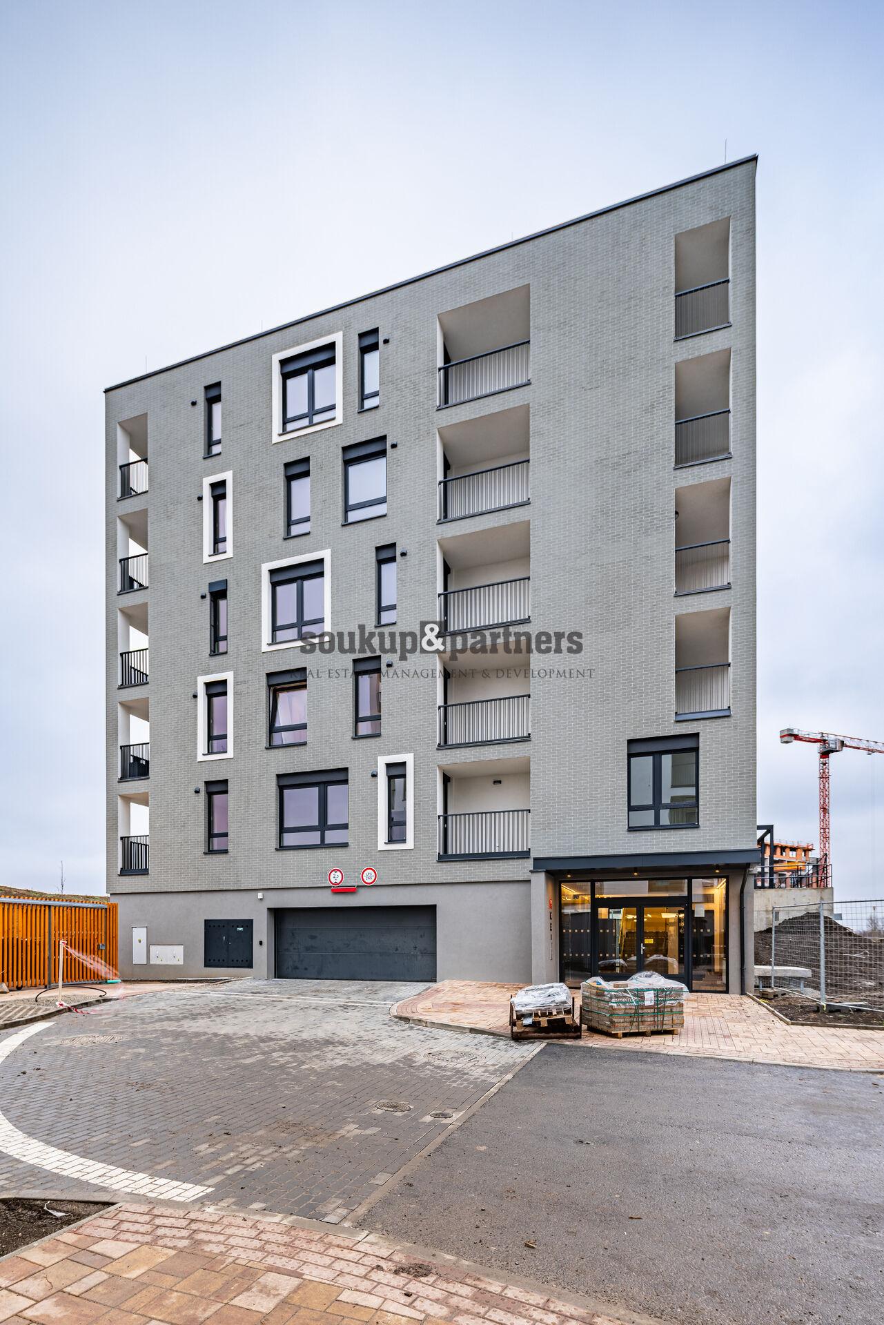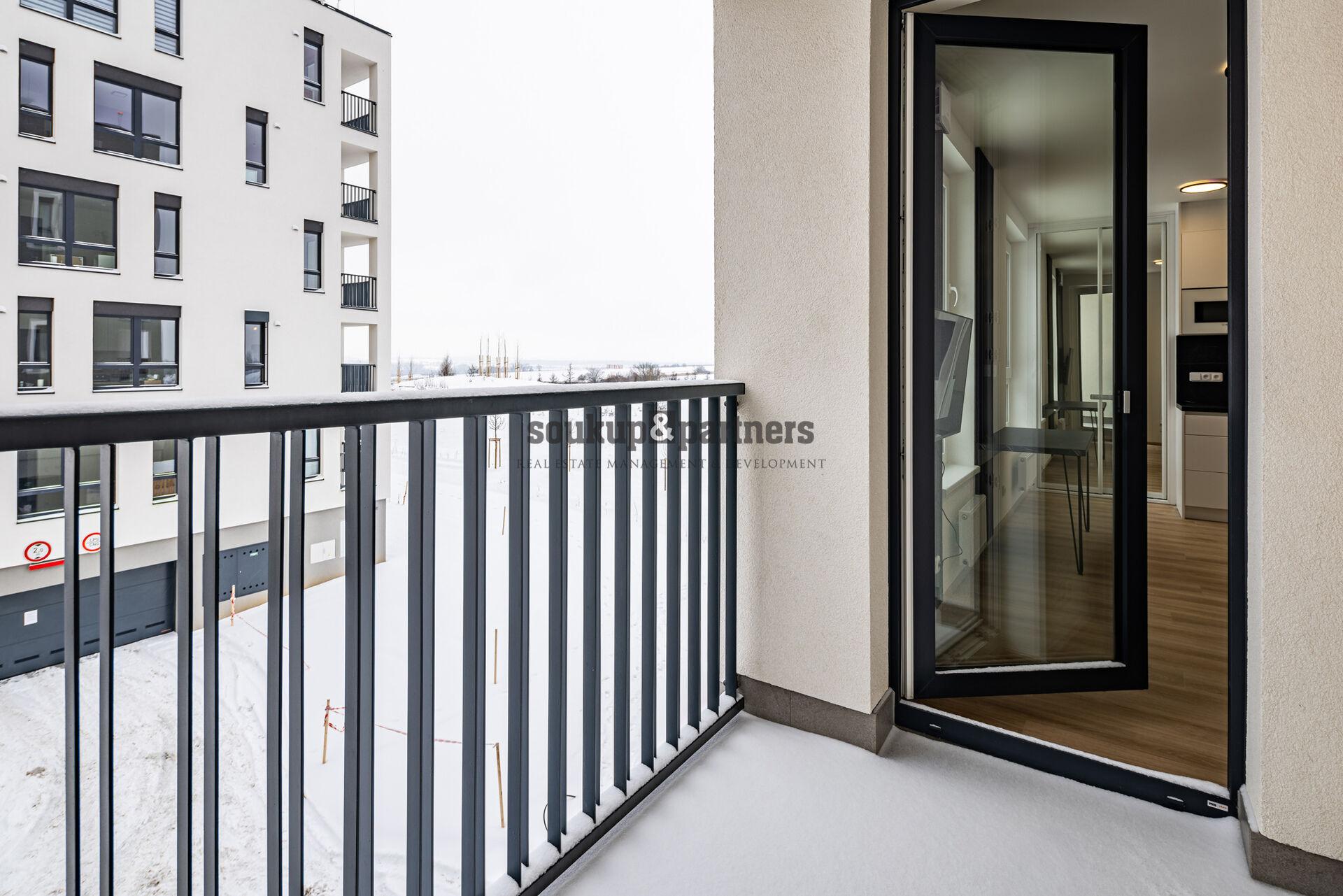 Pronájem bytu 1+kk o výměře 25,6 m² + lodžie (4,3 m²) + sklep + garážové stání, který se nachází ve 2. nadzemním podlaží novostavby v projektu U Šárky, Praha 6 - Ruzyně.